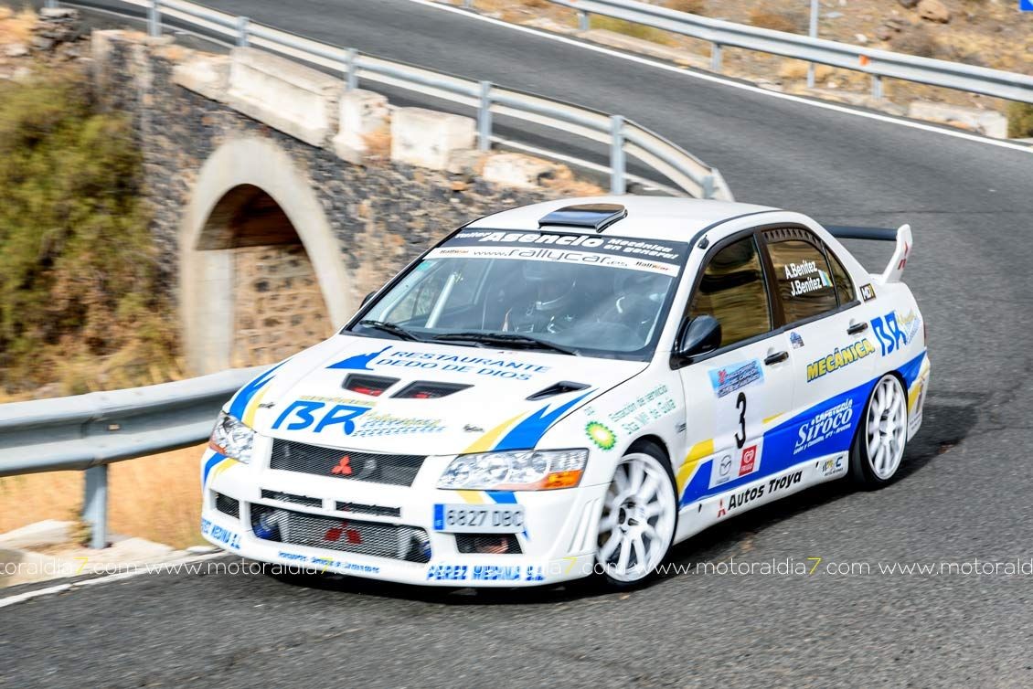 La tercera plaza y en tierra de nadie, Ayose Benítez y Joel Benítez estaban contentos con sus prestaciones con su Mitsubishi Evo VII, aunque una vibración en el tren delantero les avisaba de tener los discos de frenos en mal estado.