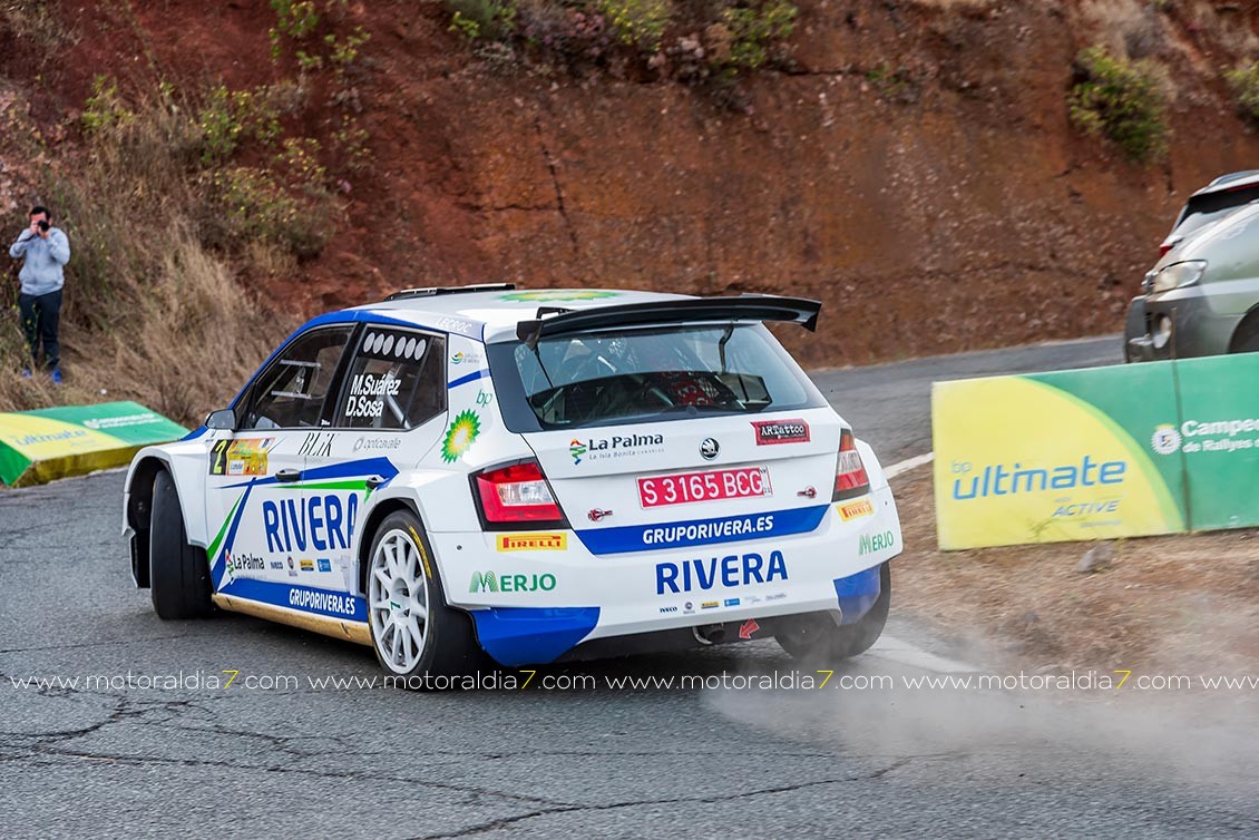 Adversario que no era otro que Julián Falcón y Daniel Rosario con un Porsche 911 GT3, que se estuvieron intercambiado las posiciones durante todo el Rally, pero al final y en el último tramo la balanza se declinaba para Martínez, aunque debido a la penalización éste Falcón se llevaba la tercera posición en el Rally de su casa.
