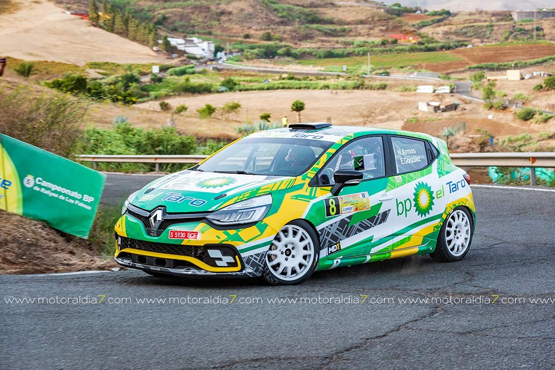 Y ya cerrando la lista de los diez primeros clasificados, novena posición para Noé Armas y Efraín González con el Renault Clio R3T de BP El Taro, que rompía la palanca de cambios en el comienzo, pero pudieron remendarlo y terminar la prueba.