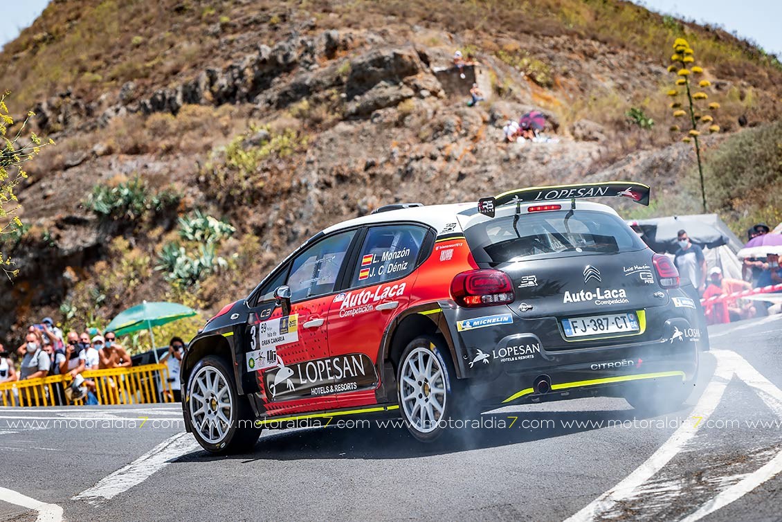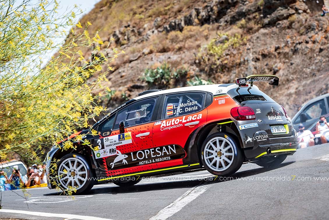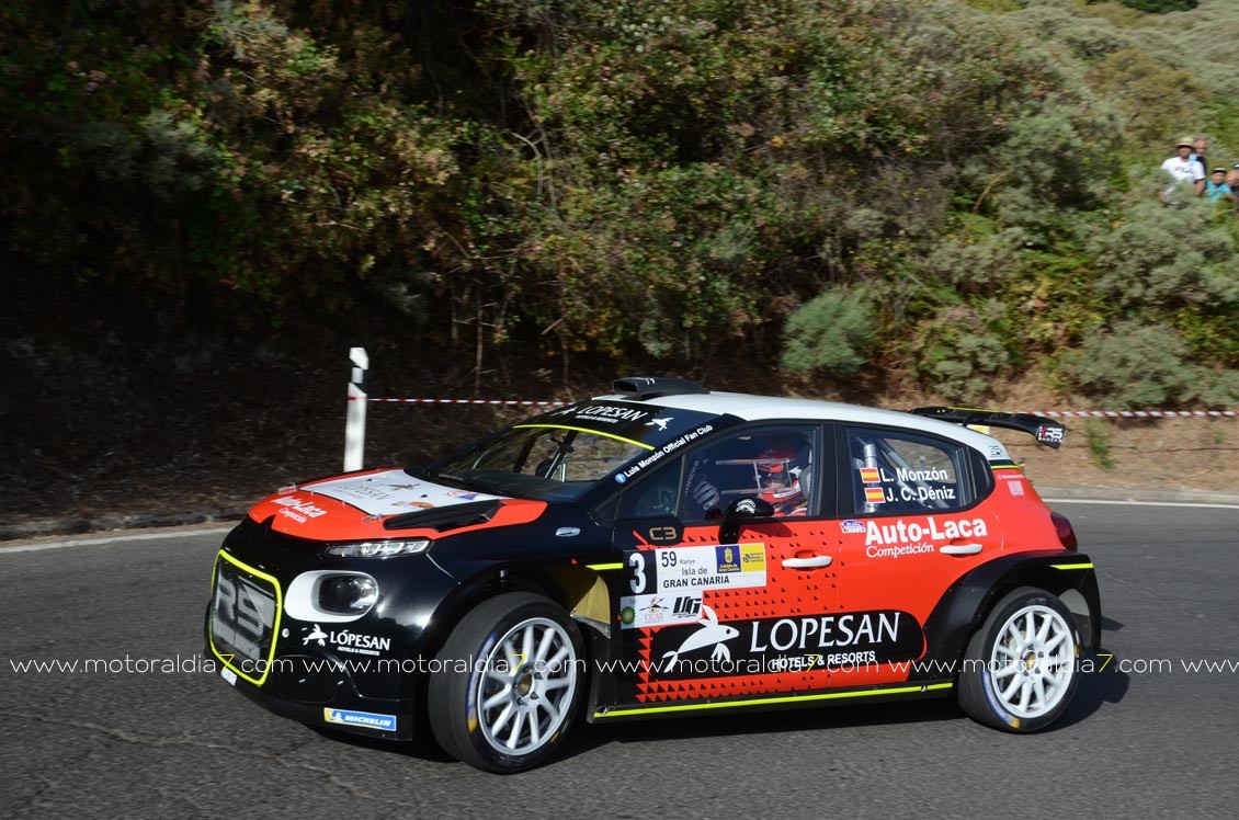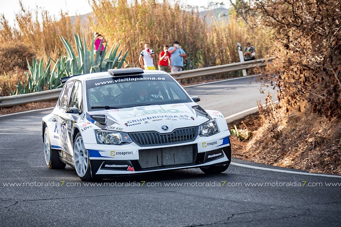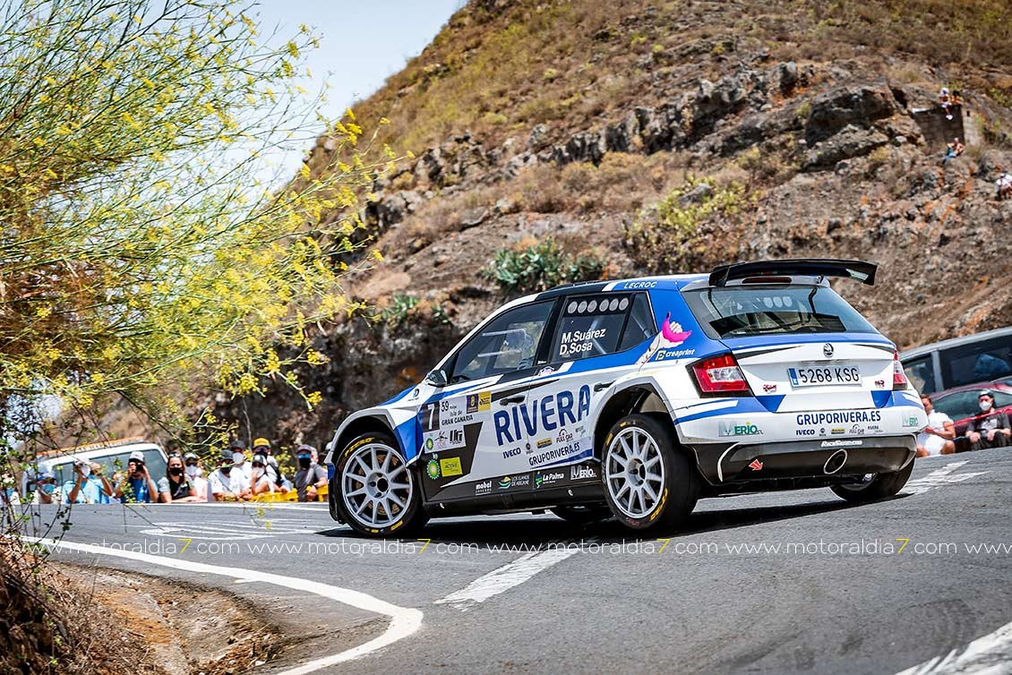 Muy duro resultó conseguir la cuarta plaza de la general para Luis Monzón y José Carlos Déniz, que con los ánimos bajo mínimos decidieron seguir intentando reparar los problemas de motor de su Citroën C3 R5, cosa que no consiguieron finalmente. Ya en la quinta posición, el piloto palmero Miguel Suárez, con Dani Sosa a la derecha, estrenaban un Škoda Fabia R5 de alquiler con mucho éxito.