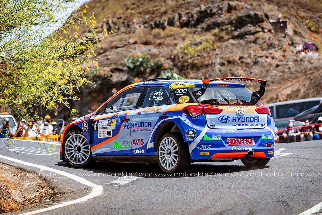 Segunda posición que fue para Iván Armas y Pity Ramos con el Porsche 911 GT3 que casi pierden la plaza por sólo 6 décimas de segundo en contra de Toñi Ponce y Dani Rosario con el Hyundai I20 R5 que, en busca de esa segunda posición, ganaba el último tramo de la jornada y debía de conformarse con la última plaza de podio.