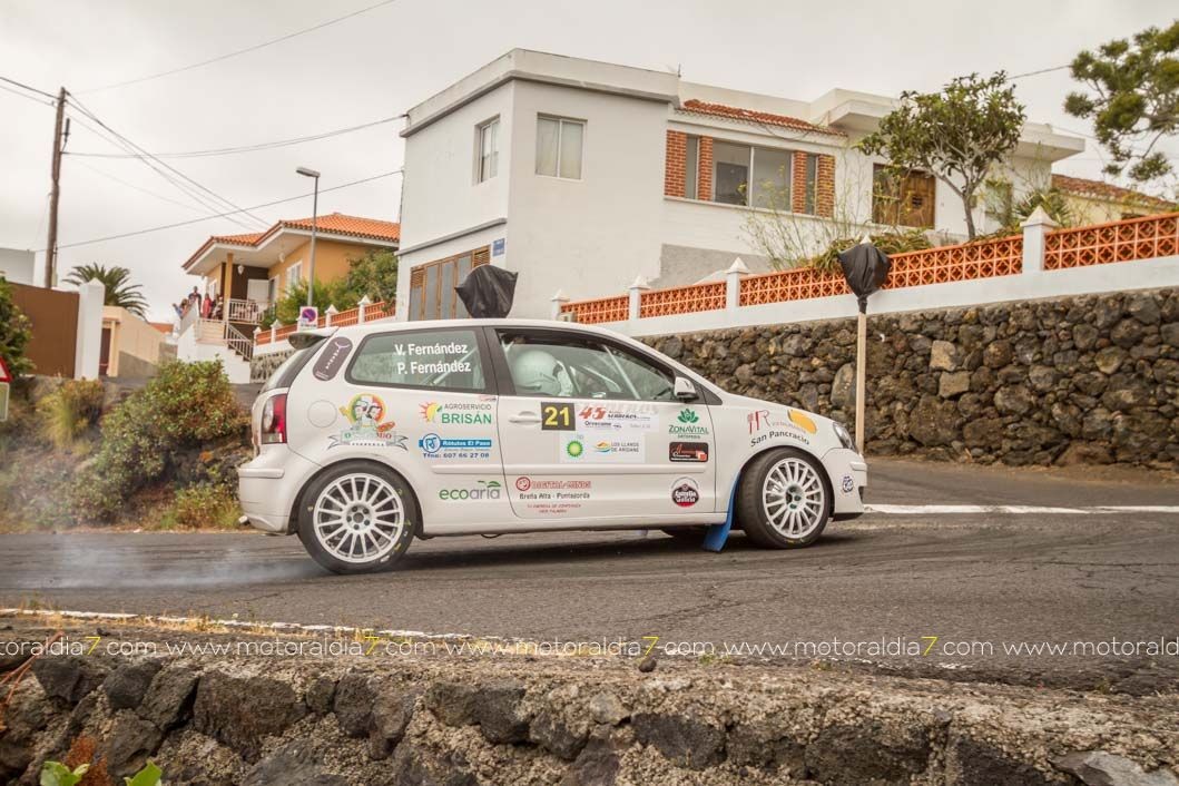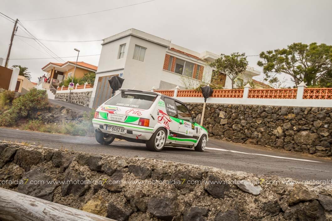 También los palmeros Samuel Rodríguez y Carlos Pais con el Mitsubishi Evo VI lograban encaramarse hasta la cuarta posición, justo por delante de Fran Santana y Pedro Quesada con el Opel Corsa Kit-Car. Asimismo, excelente clasificación del Citroën Saxo VTS de Julián González y Héctor Rodríguez