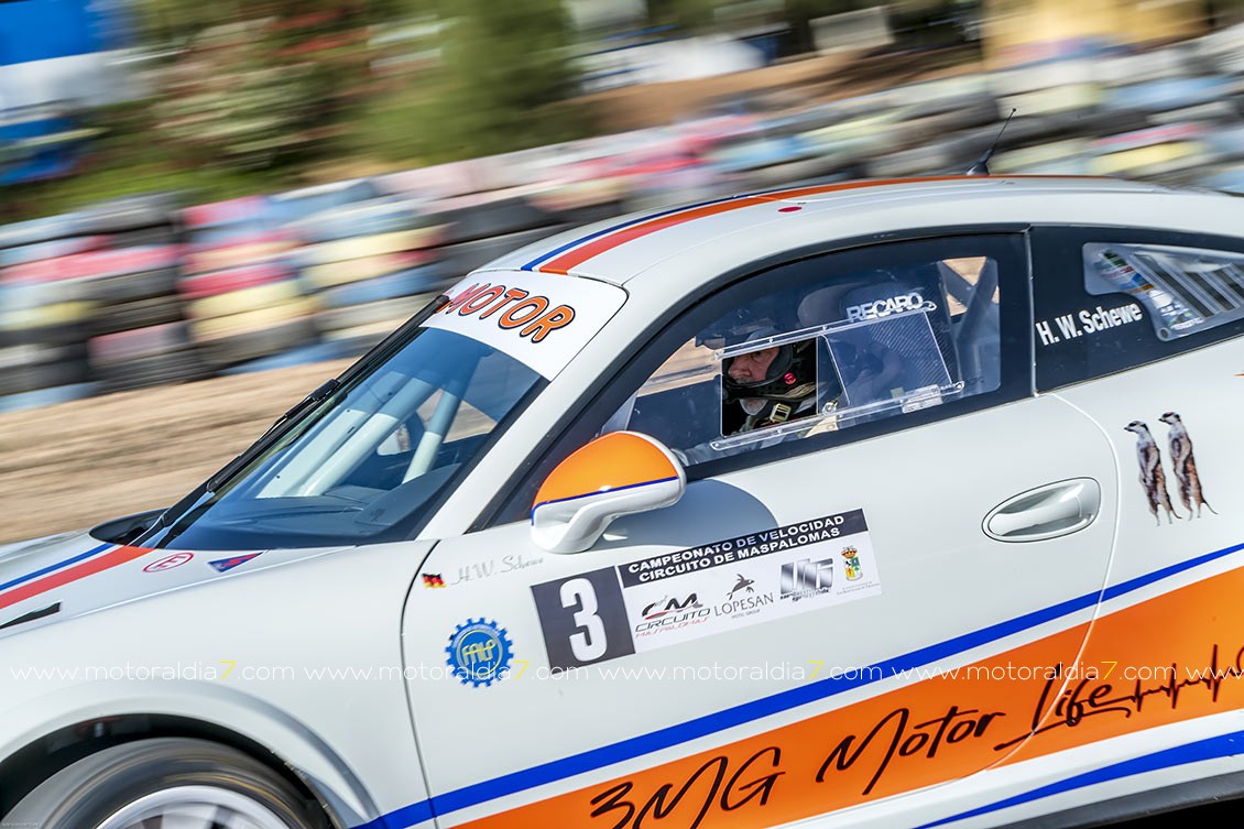 El pasado domingo en el Circuito de Maspalomas se disputaron las dos últimas carreras del Campeonato de Canarias de Velocidad, que tuvieron de protagonista al Porsche 911 GT3 del veterano piloto alemán afincado en Gran Canaria, Heinz Walter Schewe, ya que inscrito en la categoría Extreme obtuvo pleno de victorias, durante una soleada jornada dominical en el trazado sureño, con 15 coches en pista de los 17 inscritos, algunos viajando desde Tenerife, y bajo la organización habitual de la Escudería Maspalomas.
