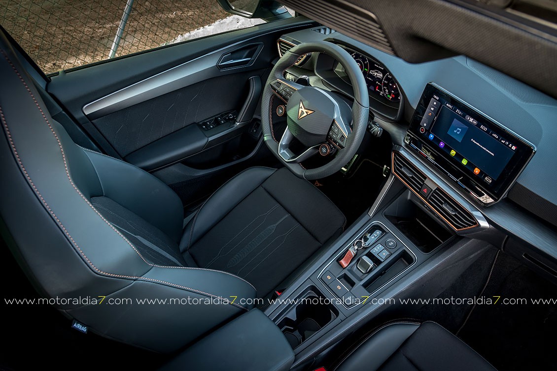 Gracias a CUPRA Las Palmas, pudimos probar el nuevo León e-Hybrid en su versión de 245 CV (motor de combustión de 150 CV y motor eléctrico de 115 CV) con una batería de 13 kWh, lo que le da una autonomía eléctrica de entre 50 a 60 km, según el tipo de conducción y terreno.