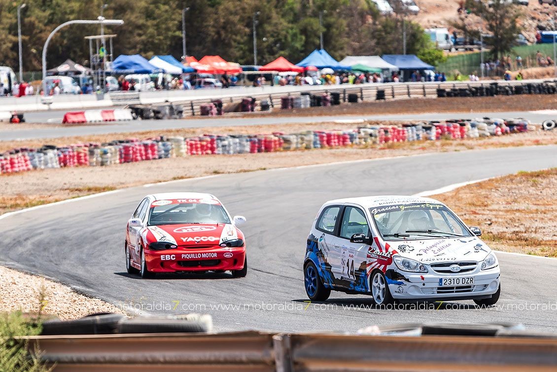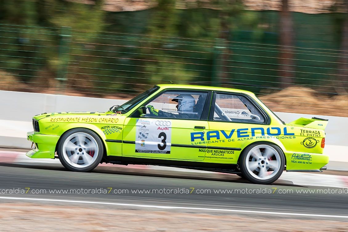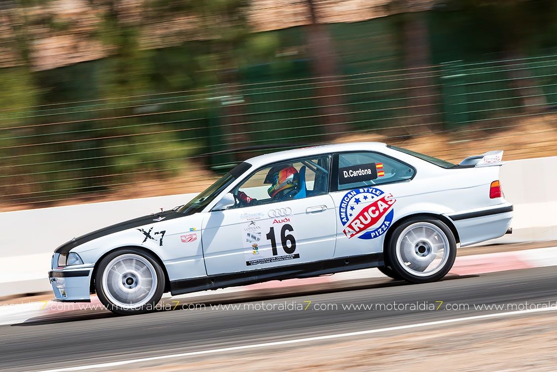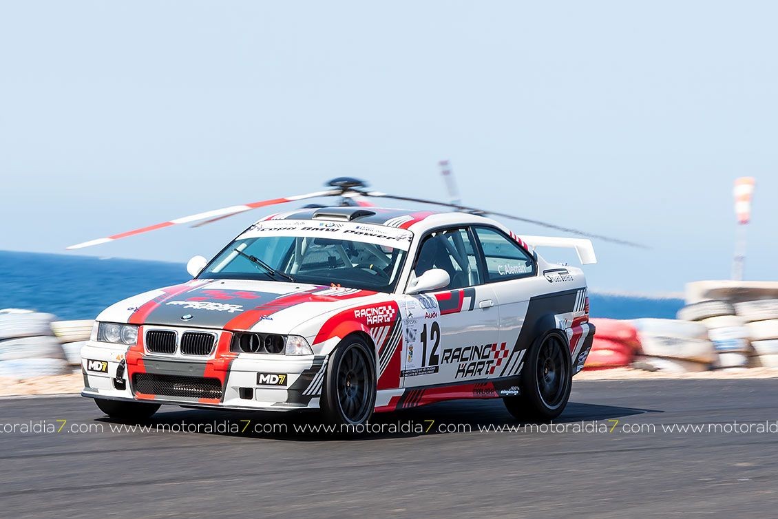 También sufría muchísimo Carmelo García, que situado tercero en la primera manga con su BMW M3, problemas de neumáticos le fueron retrasando en las dos mangas posteriores.