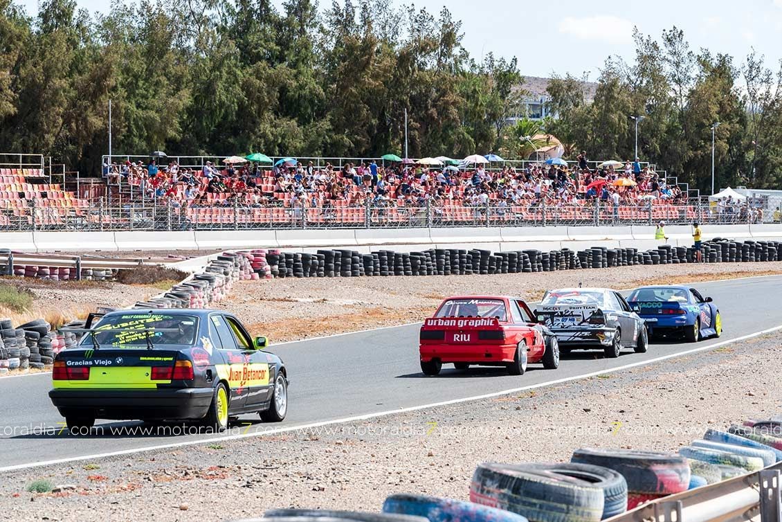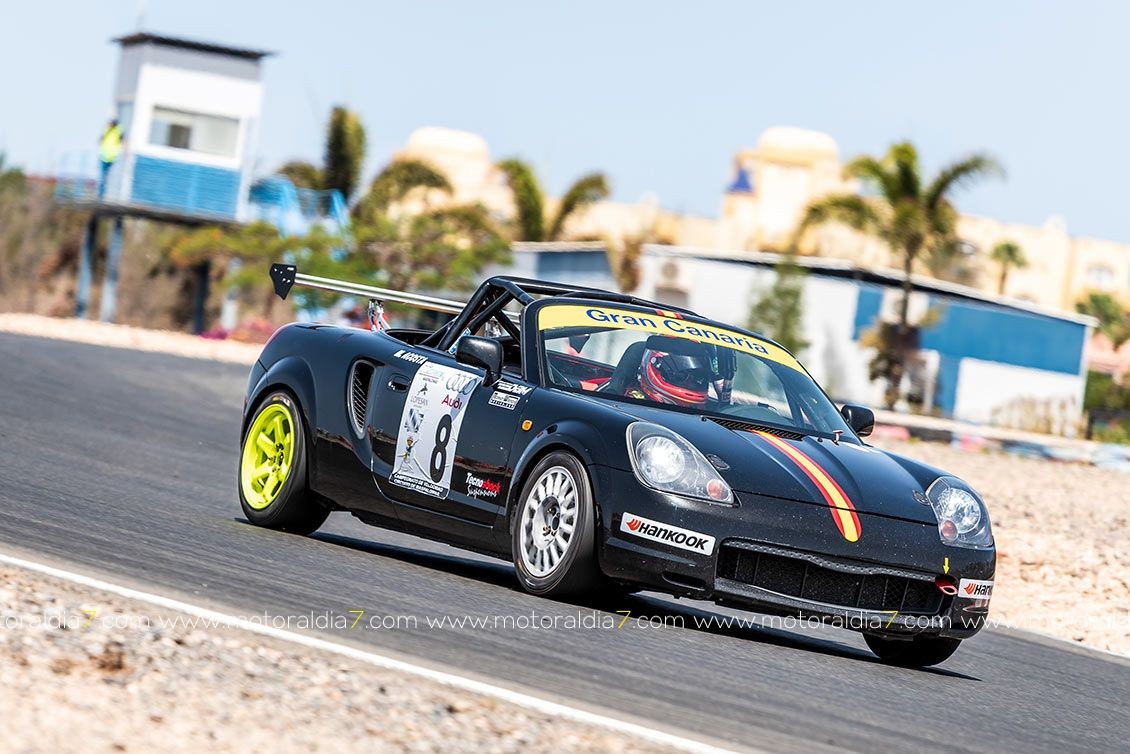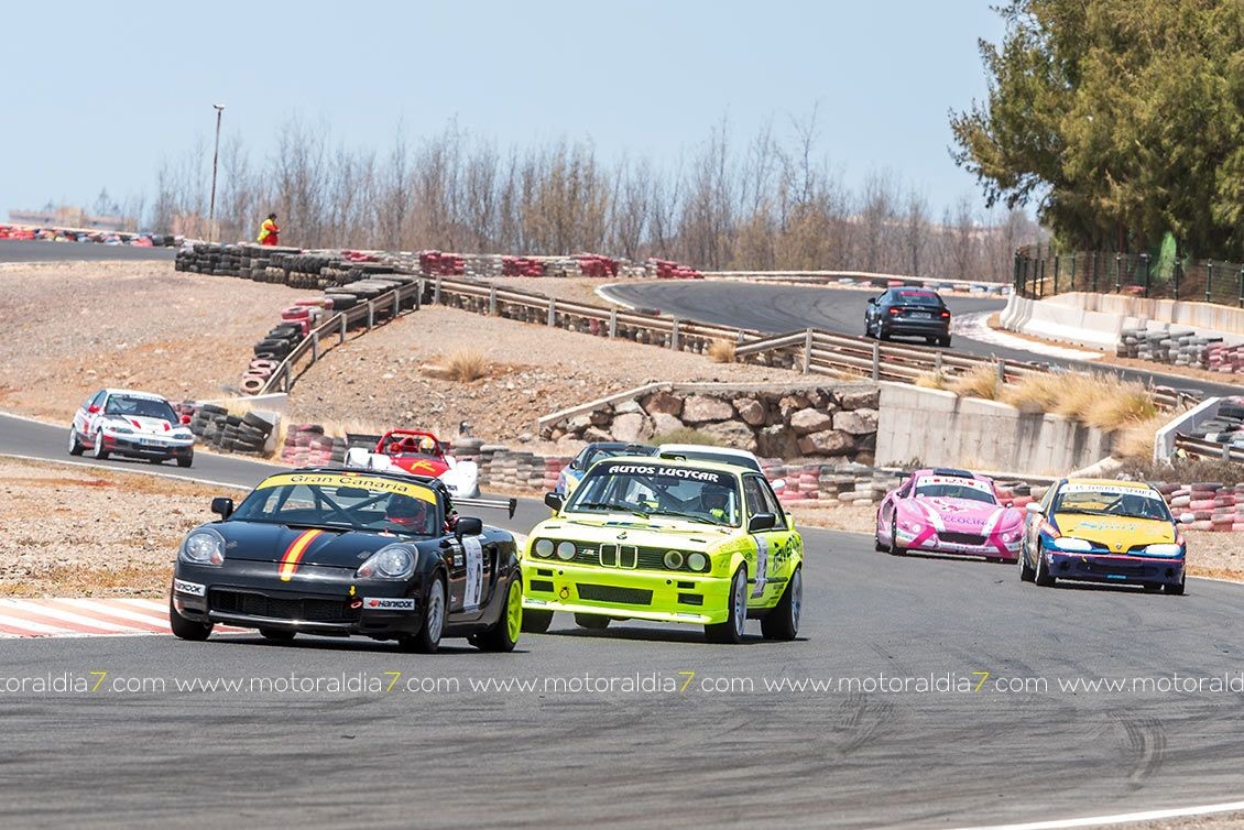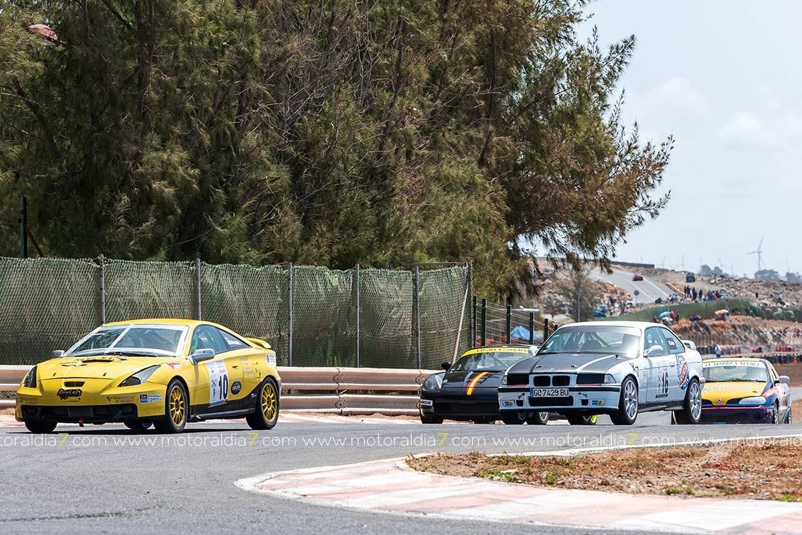 Los vehículos de tracción trasera sufrieron mucho en el Circuito de Maspalomas, que iban de más a menos conforme se quedaban sin neumáticos, como le ocurría a Manuel Acosta (Toyota MR2) y al novel Daniel Cortes (BMW M3) que además sufrieron también problemas mecánicos.