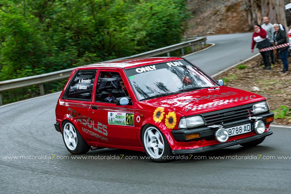 Hasta el sexto puesto subía Alexis Santana en su regreso a las competiciones después de varias temporadas, desempolvando otra vez el Renault 5 GT Turbo con una actuación ejemplar, con un mejor crono de 4.12,8, por delante de otro "gallito" de estos coches bien conocidos como los "soplillos", séptimo de la general de turismos.