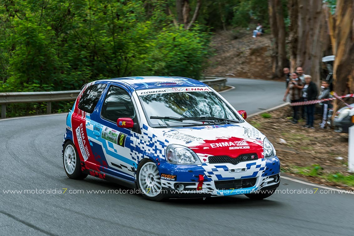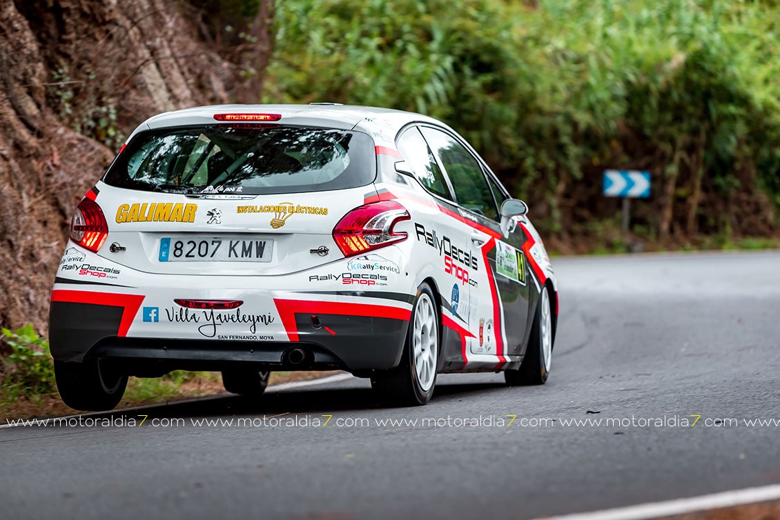 David Tenorio poco pudo hacer para mejorar su octavo lugar con el Opel Corsa, que de nuevo llevó a tope por todo el trazado de Moya a Fontanales. Nelson Climent con el Peugeot 208 R2 y Alejandro Gil con el Nissan 200 SX completaron el grupo de los diez primeros de la general de turismos.