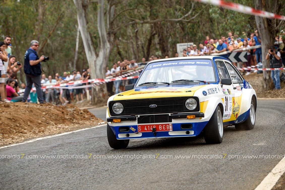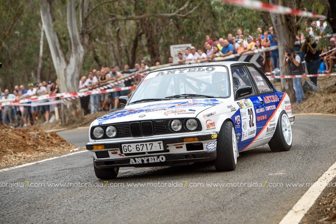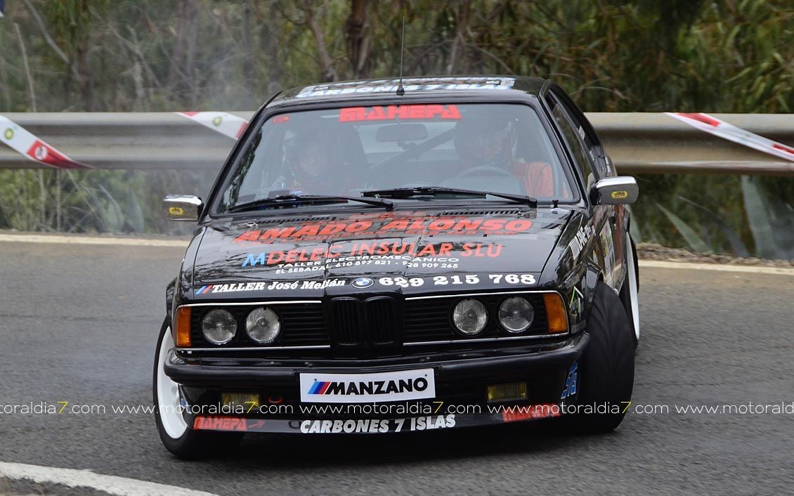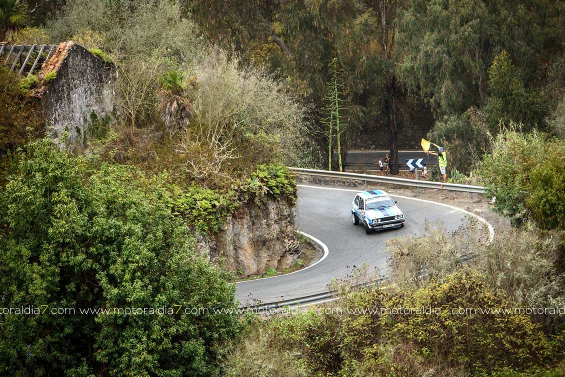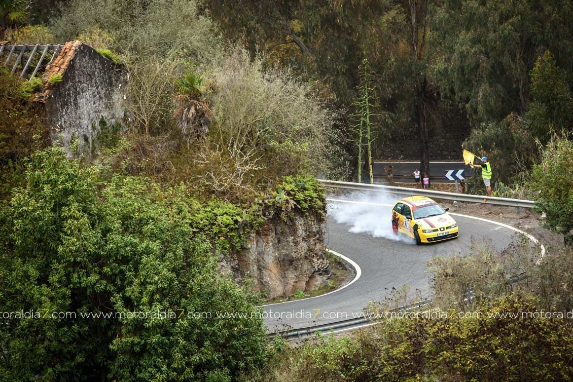 En la primera manga oficial, Anastasio Suárez debía parar al sufrir una avería su Ford Escort MKII, afectando también al paso de vehículos siguientes. Iván Armas y José Ricardo Rodríguez pararon en el lugar del incidente, pudiendo continuar hasta meta Miguel Cabral y René Santana. Al terminar la manga, los comisarios deportivos decidían asignar a Iván Armas el mismo tiempo que Miguel Cabral, al igual que en la categoría de barquetas se asignaba el tiempo de René Santana a José Ricardo Rodríguez. Por lo tanto, Cabral y Armas quedaban empatados en esta manga oficial y todo quedaba pendiente de lo que pudiera suceder en la segunda manga del día.