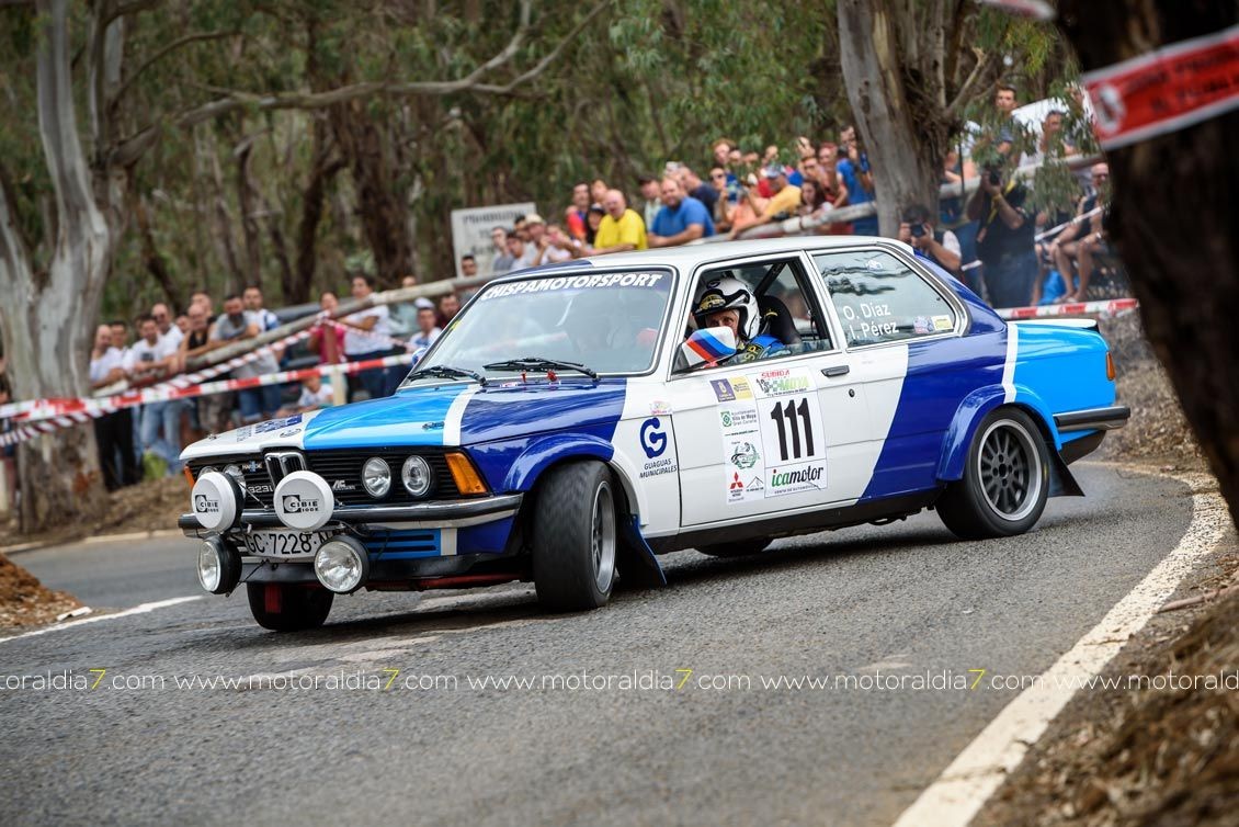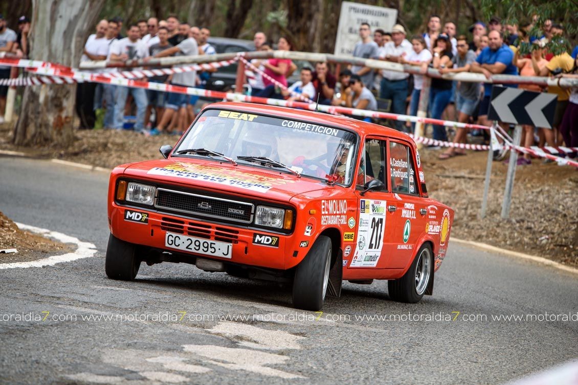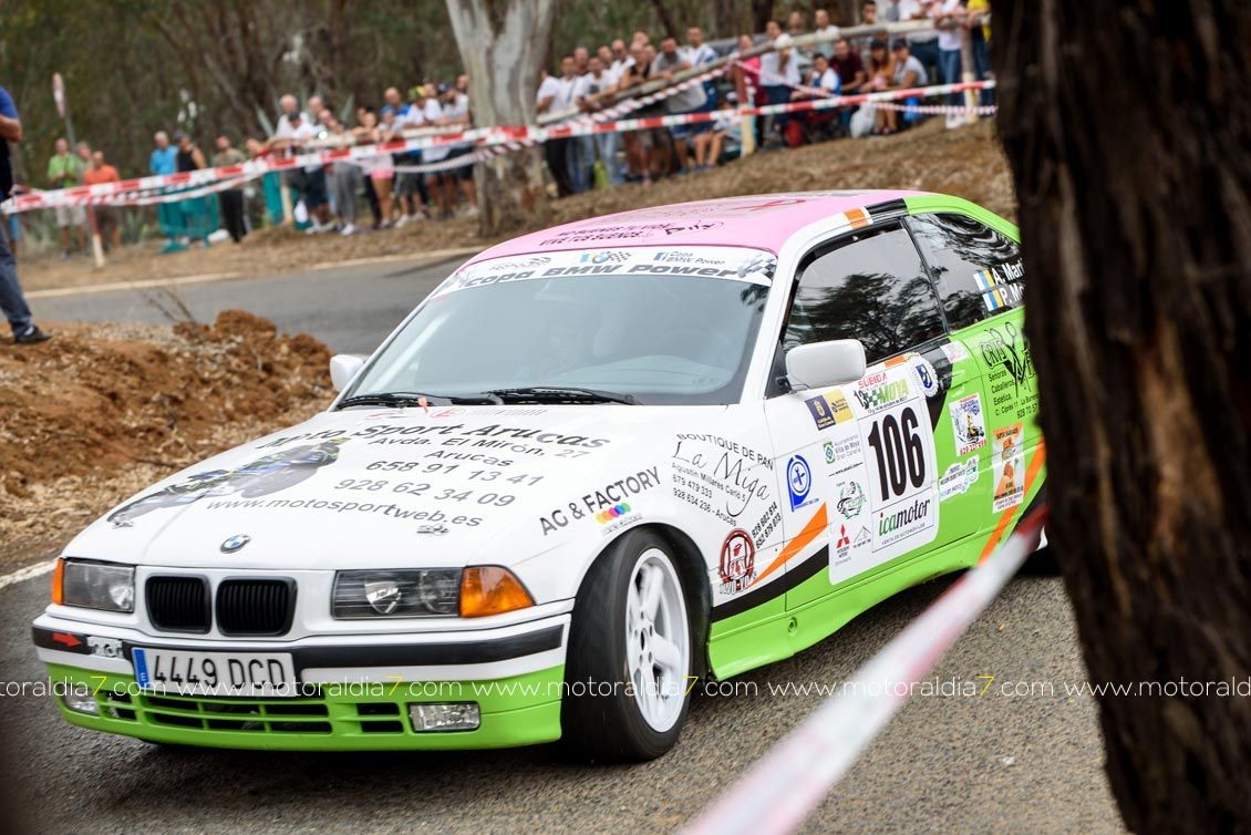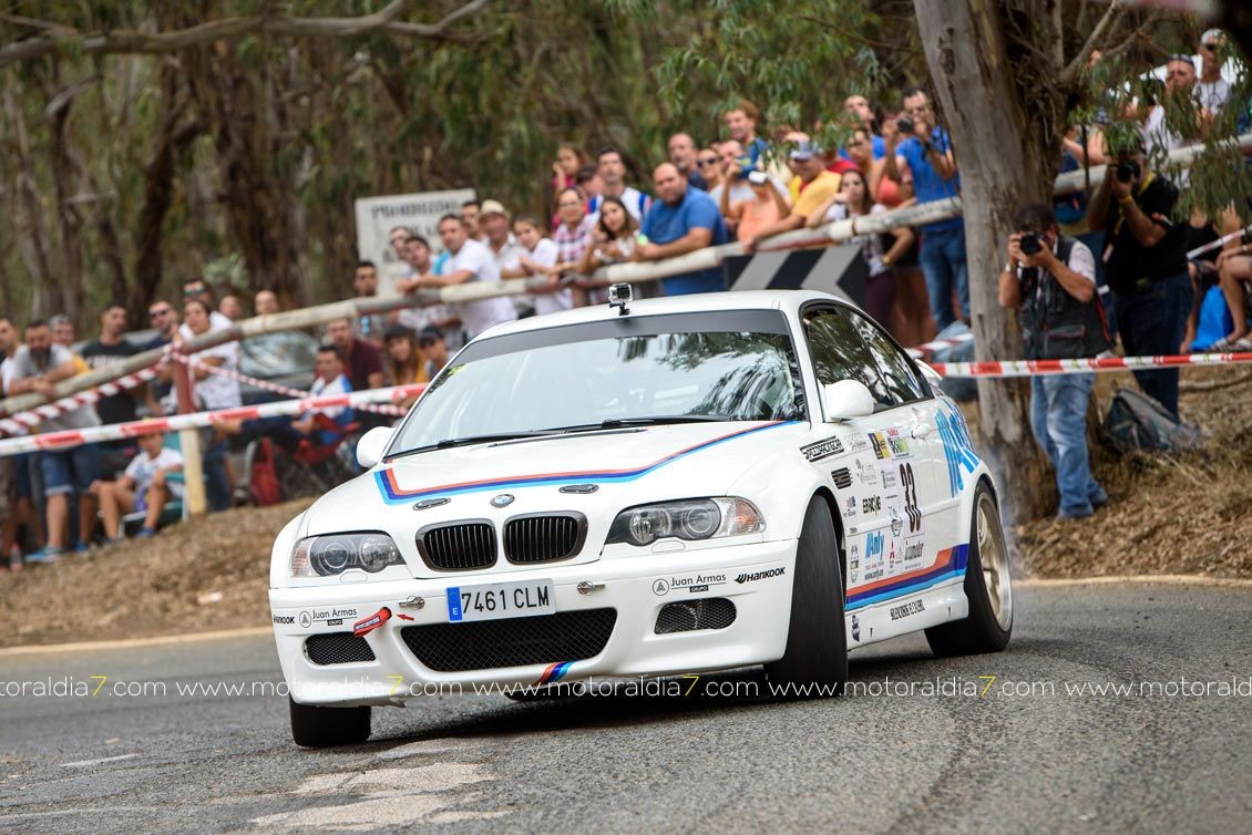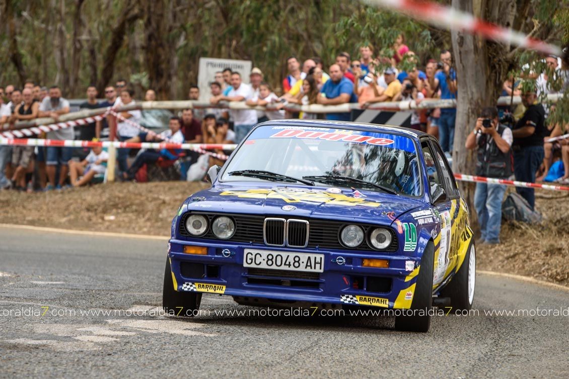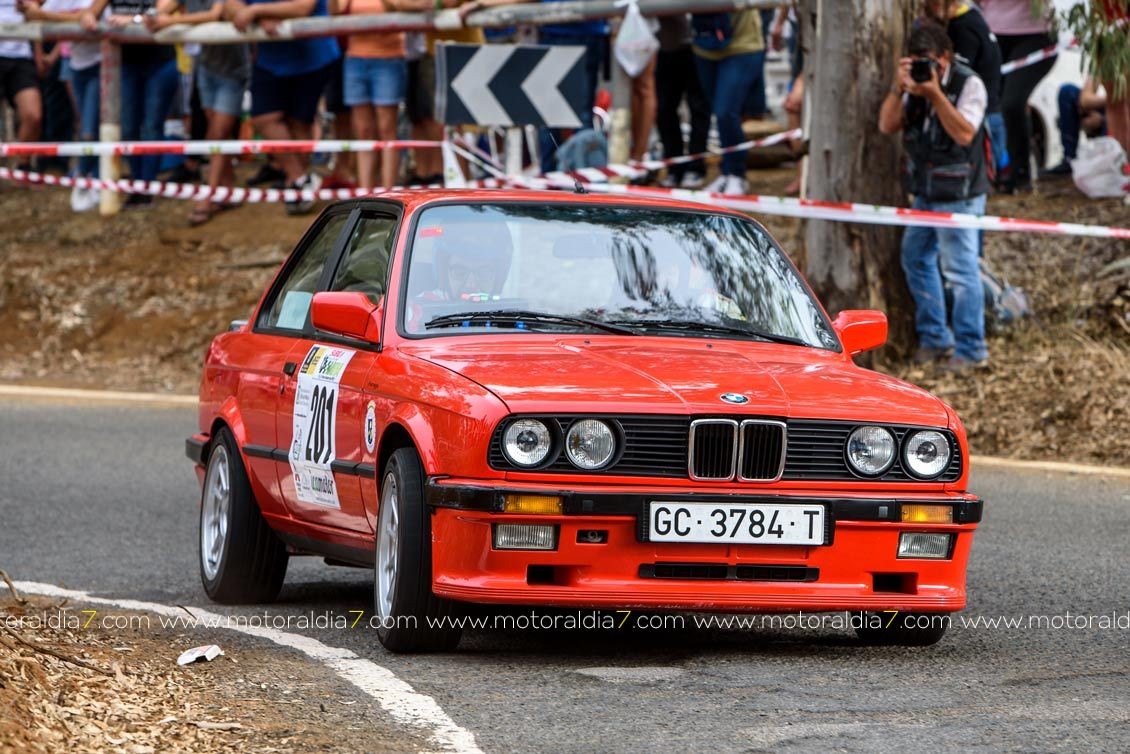 En la primera manga oficial, Anastasio Suárez debía parar al sufrir una avería su Ford Escort MKII, afectando también al paso de vehículos siguientes. Iván Armas y José Ricardo Rodríguez pararon en el lugar del incidente, pudiendo continuar hasta meta Miguel Cabral y René Santana. Al terminar la manga, los comisarios deportivos decidían asignar a Iván Armas el mismo tiempo que Miguel Cabral, al igual que en la categoría de barquetas se asignaba el tiempo de René Santana a José Ricardo Rodríguez. Por lo tanto, Cabral y Armas quedaban empatados en esta manga oficial y todo quedaba pendiente de lo que pudiera suceder en la segunda manga del día.