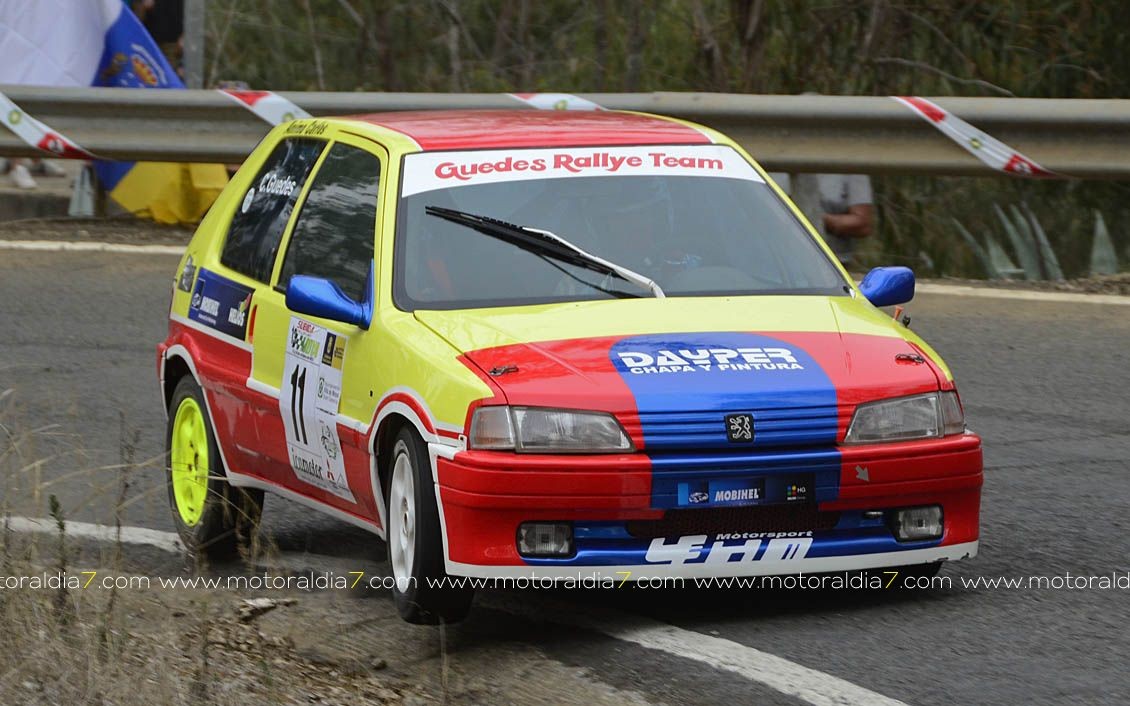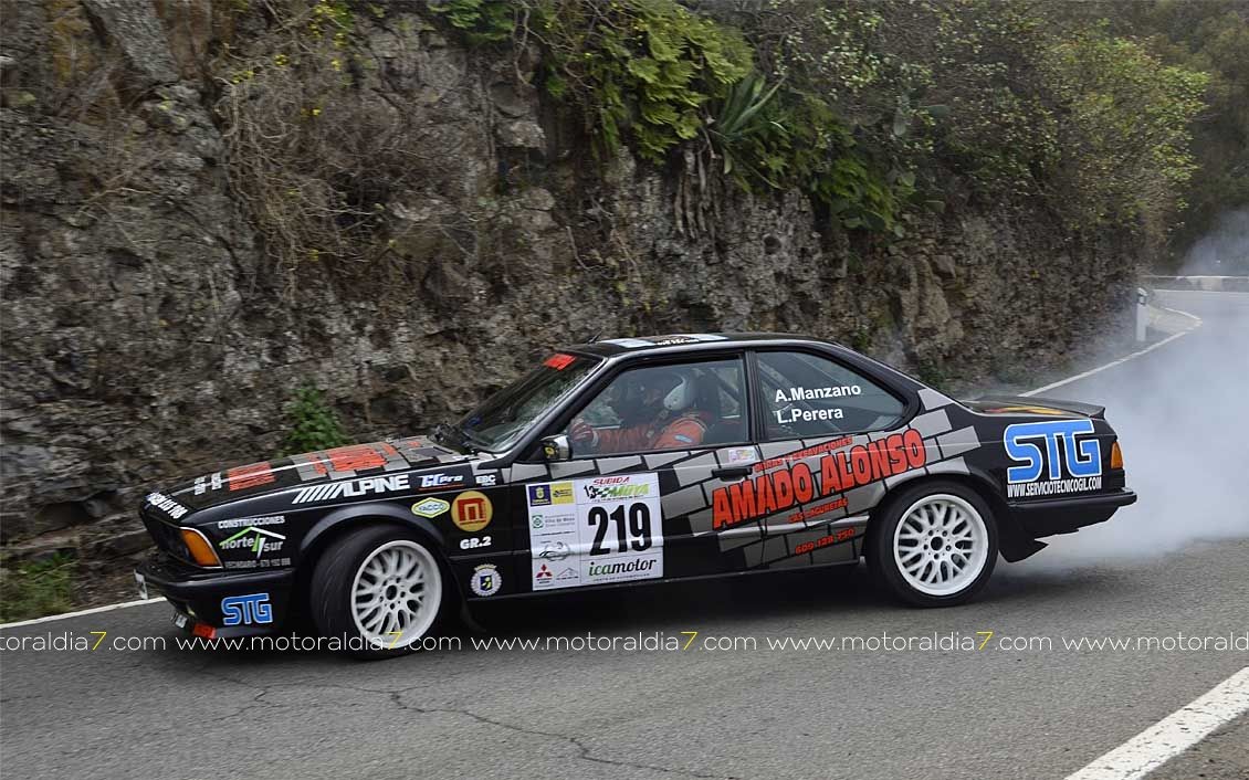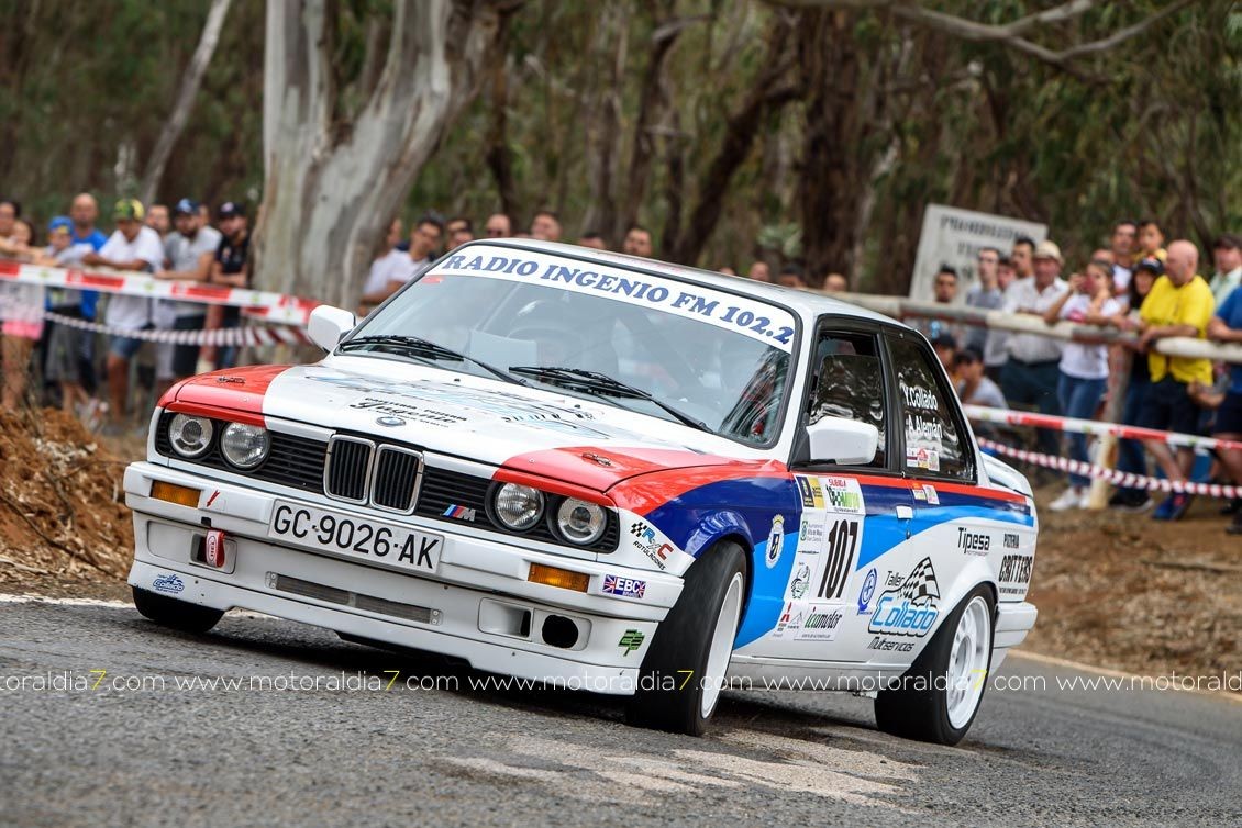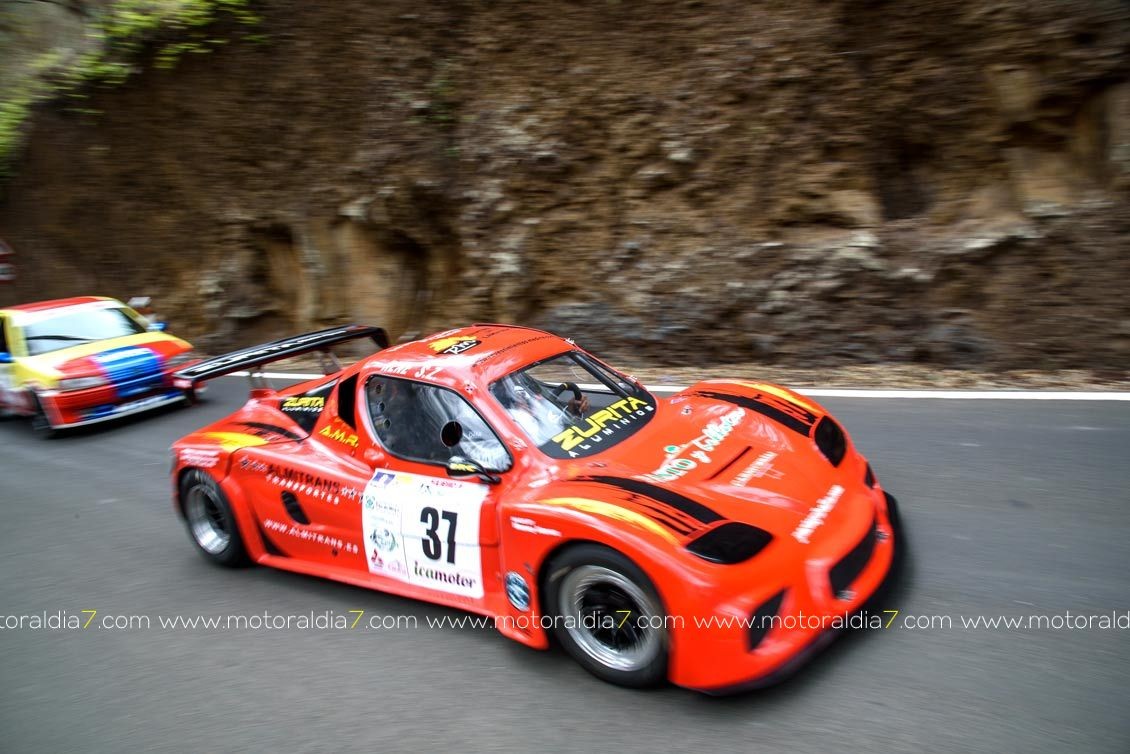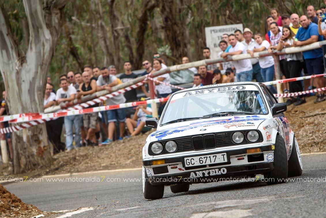 En la primera manga oficial, Anastasio Suárez debía parar al sufrir una avería su Ford Escort MKII, afectando también al paso de vehículos siguientes. Iván Armas y José Ricardo Rodríguez pararon en el lugar del incidente, pudiendo continuar hasta meta Miguel Cabral y René Santana. Al terminar la manga, los comisarios deportivos decidían asignar a Iván Armas el mismo tiempo que Miguel Cabral, al igual que en la categoría de barquetas se asignaba el tiempo de René Santana a José Ricardo Rodríguez. Por lo tanto, Cabral y Armas quedaban empatados en esta manga oficial y todo quedaba pendiente de lo que pudiera suceder en la segunda manga del día.