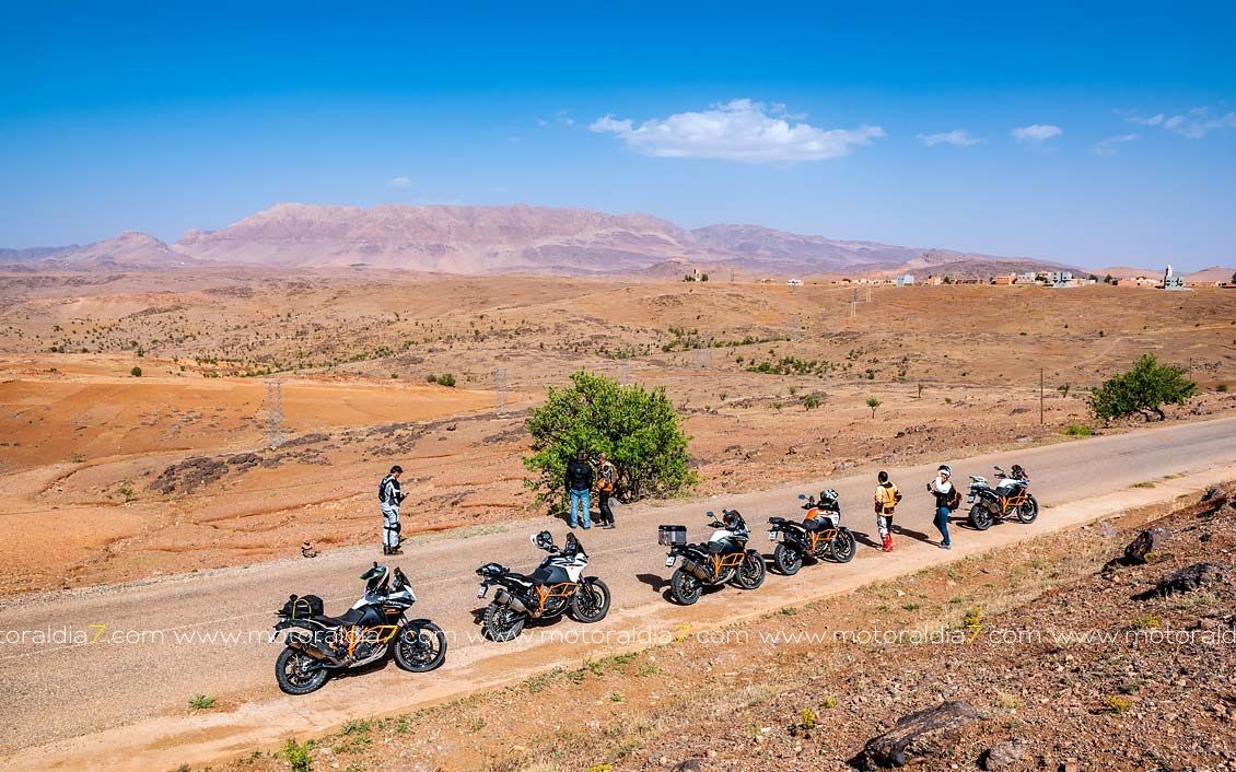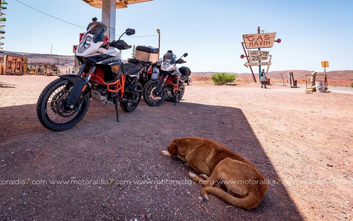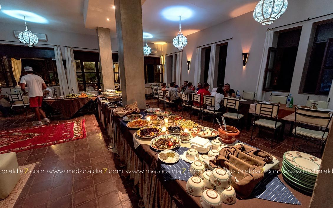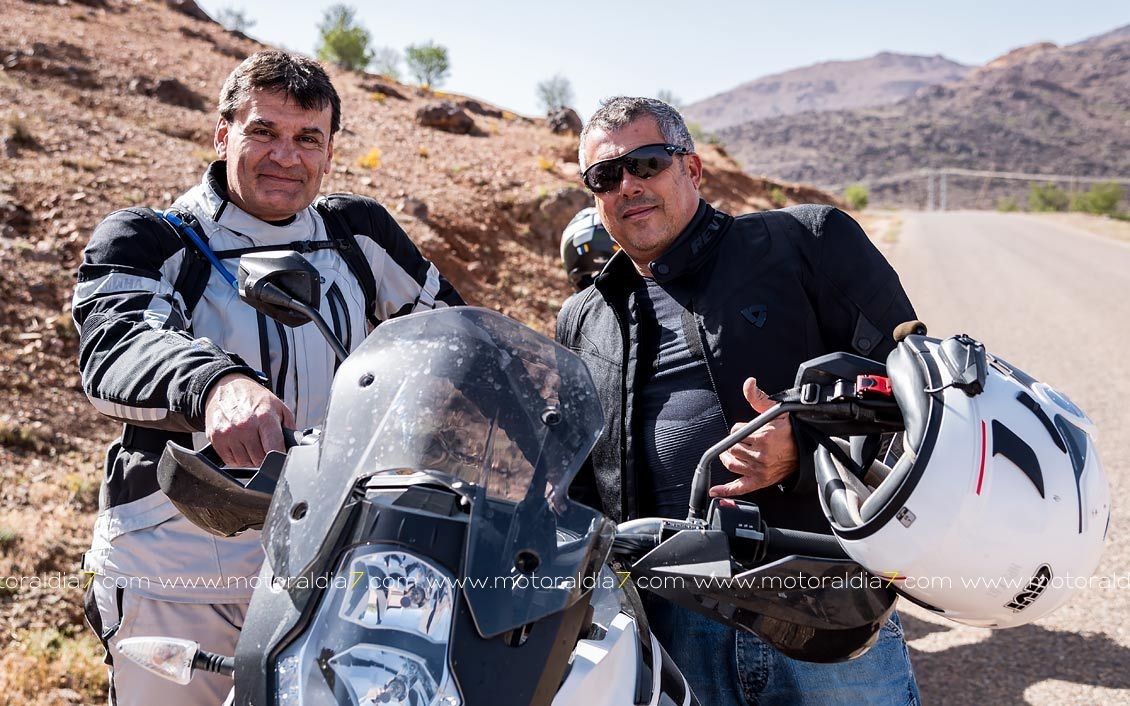 Para llegar a nuestro Hotel este día, Samir nos tenia preparada una pista de tierra bastante fácil y ancha. Era su forma de ver el nivel de cada uno en conducción en tierra, para poder planificar las rutas de los días siguientes. Todos pasamos el examen con nota, incluidos Javi y Lidia que hacían el viaje en pareja sobre su KTM 1190. Incansable Lidia, que nos sorprendía a todos por sus cualidades como acompañante de Javi, y daba gusto verlos a ambos en tierra.