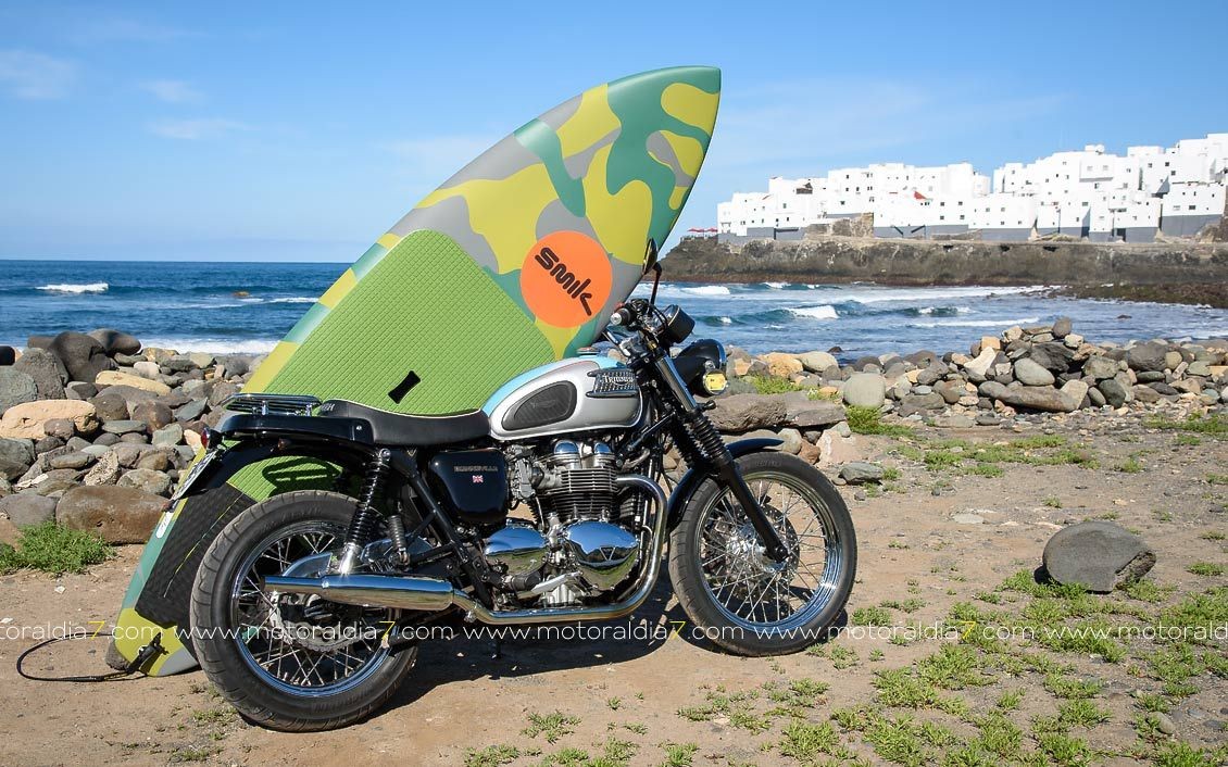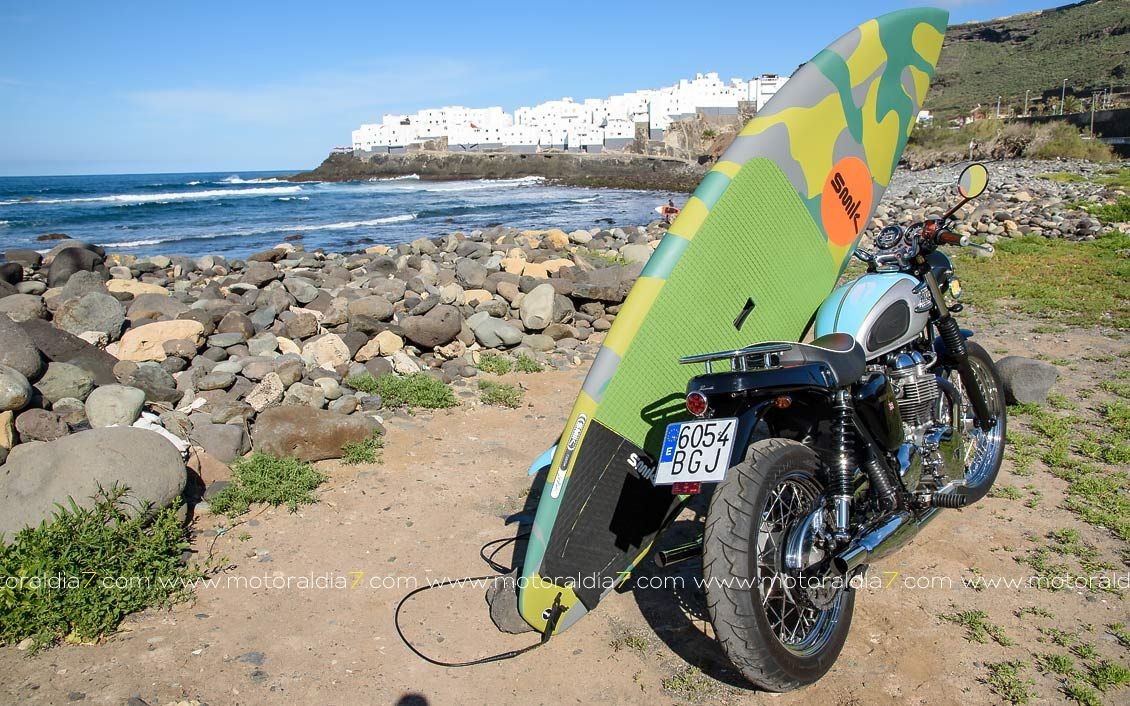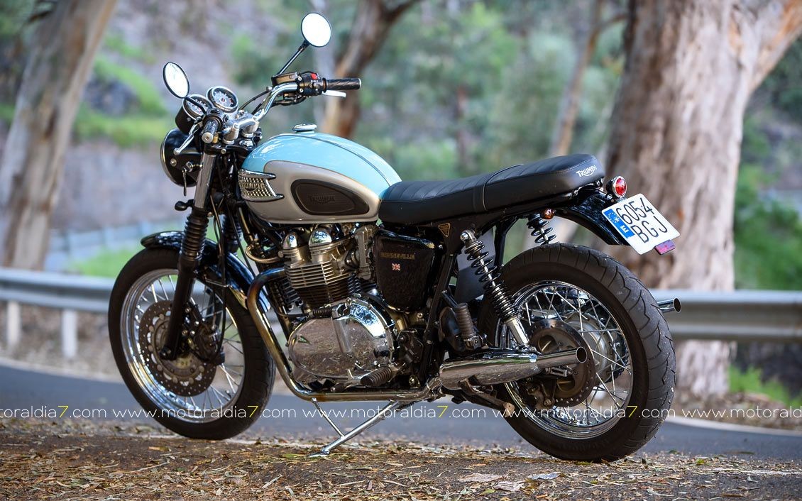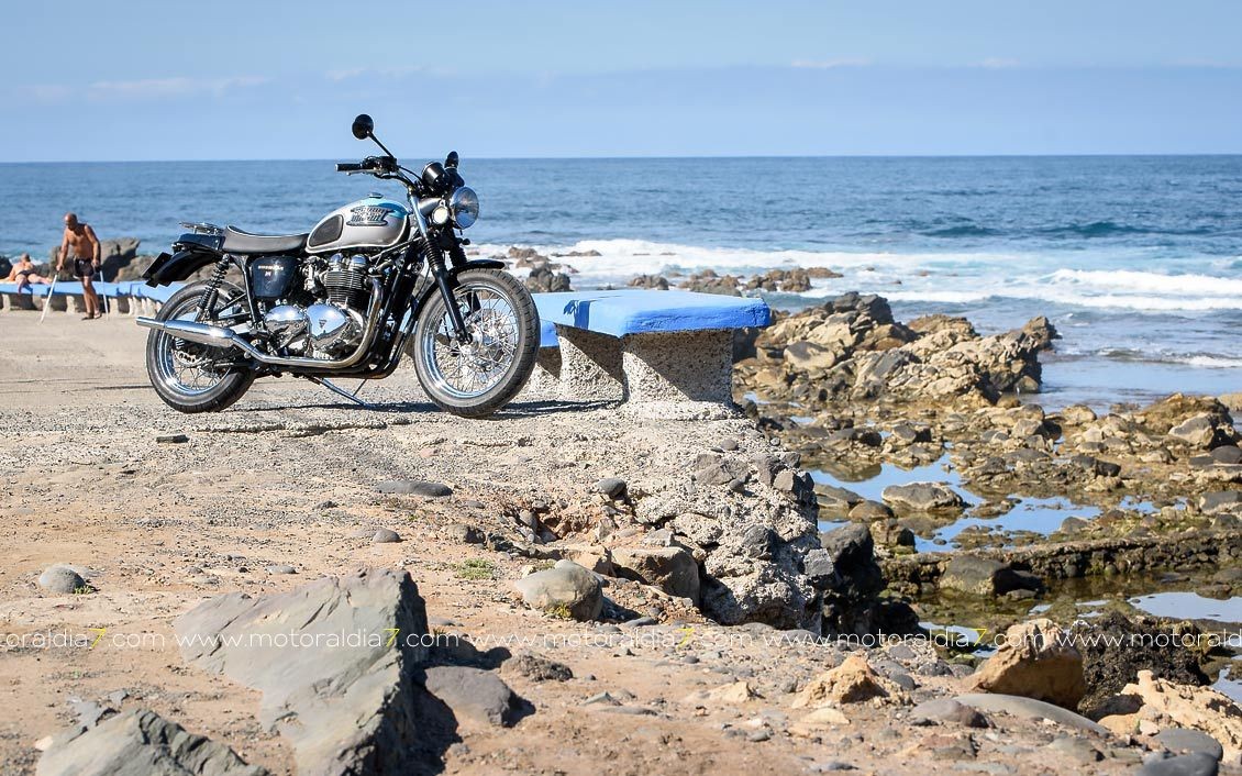 Mi moto, la Triumph Bonneville, la compré en el mes de marzo del año 2001 en el que la marca Triumph renacía de la mano de John Bloor. La adquirí en el concesionario oficial de Triumph de Las Palmas de Gran Canaria, que en ese momento lo llevaba el amigo Juan Artiga y fue la primera de esta nueva generación que se matriculó, circuló y sigue haciéndolo, en Gran Canaria.