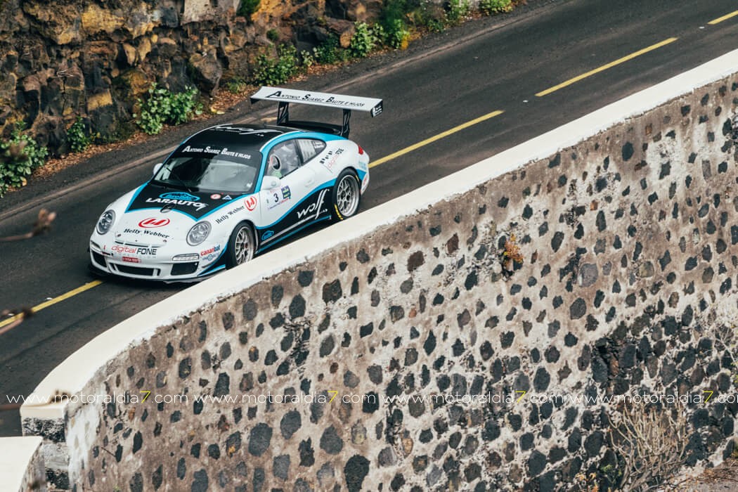 Lauren García cumplió su deseo de inscribir su nombre como vencedor en la categoría de Turismos en la histórica Subida Mirador de Güímar, merced a un tiempo de 2:29.266. “He acabado muy contento”, destacó a la conclusión de la prueba el piloto de Arico. “Muchos compañeros han empeorado sus tiempos respecto a otras temporadas y nosotros creo que hemos logrado una buena referencia”, subrayó. Unas obras próximas al trazado dejaban el recorrido con alguna que otra suciedad, un detalle clave para alcanzar un buen registro. A pesar de todo, Lauren García se aplicó al máximo para disfrutar al volante del Porsche 997 GT3 2010. “Los neumáticos Pirelli P Zero son una pasada, es espectacular cómo se comporta el coche”, reconoció al finalizar su actuación. Cabe recordar que en Güímar su coche montaba slicks por primera vez, además del combustible de la firma ETS. Una jornada de pruebas que se ha saldado con la mejor nota posible.