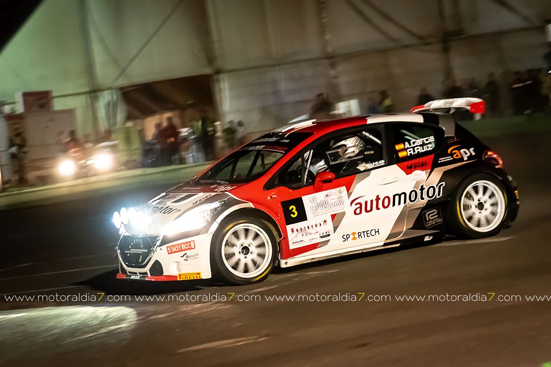 Muestra de lo que se juega en esta prueba, Adrián García y Raquel Ruiz con el Peugeot 208 T16 R5, es la segunda posición del primer tramo, con sus máximos rivales en el Regional justo por detrás, Enrique Cruz y Yeray Mujica con el Porsche 911 GT3 del DISA Copi Sport, a sólo 1 décima de segundo.