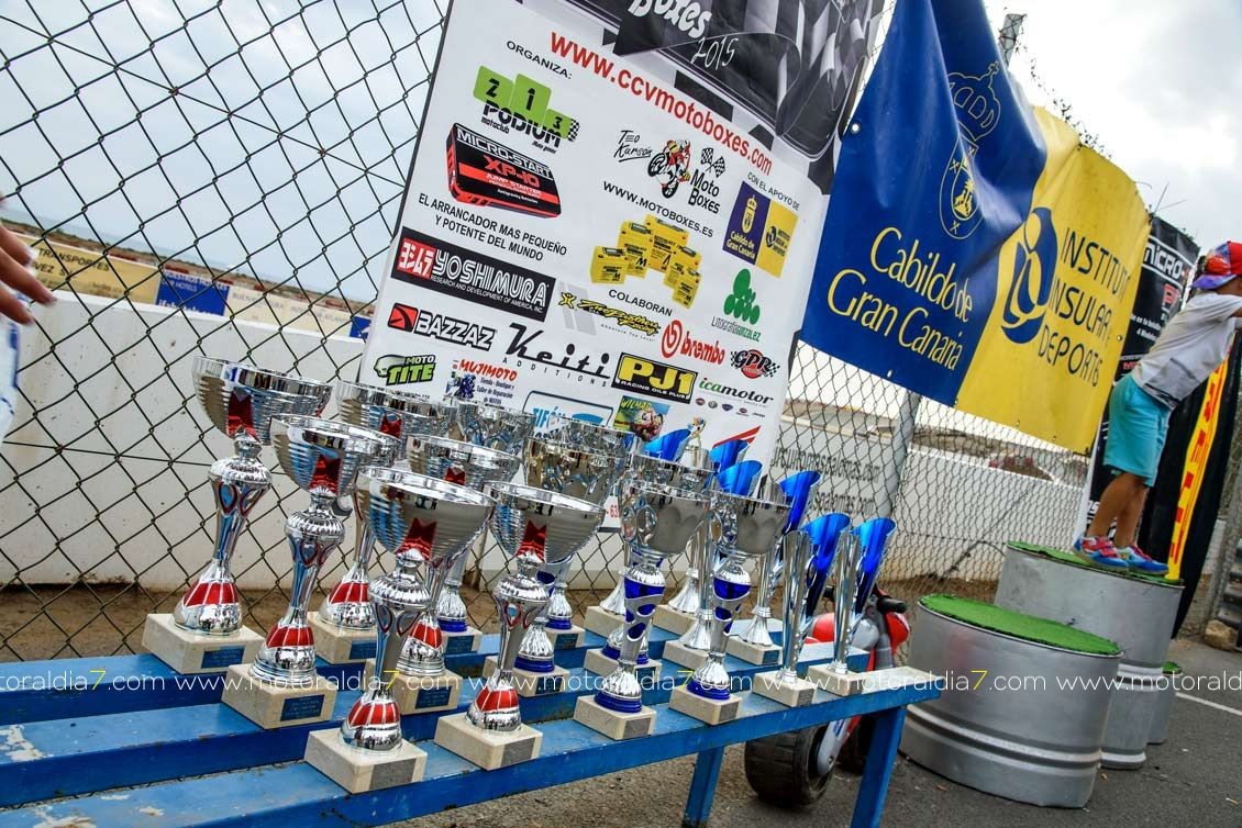 Y así, con pilotos sonriendo y equipos aplaudiendo, se daba por terminada la última carrera de la temporada del CCV Moto Boxes “Trofeo Cabildo de Gran Canaria”. Un prueba que ha dejado un buen sabor de boca a pilotos, equipos y aficionados, que han podido disfrutar, una vez más del espectáculo en directo y de forma gratuita, de ver en pista a los mejores pilotos de Canarias de la especialidad.