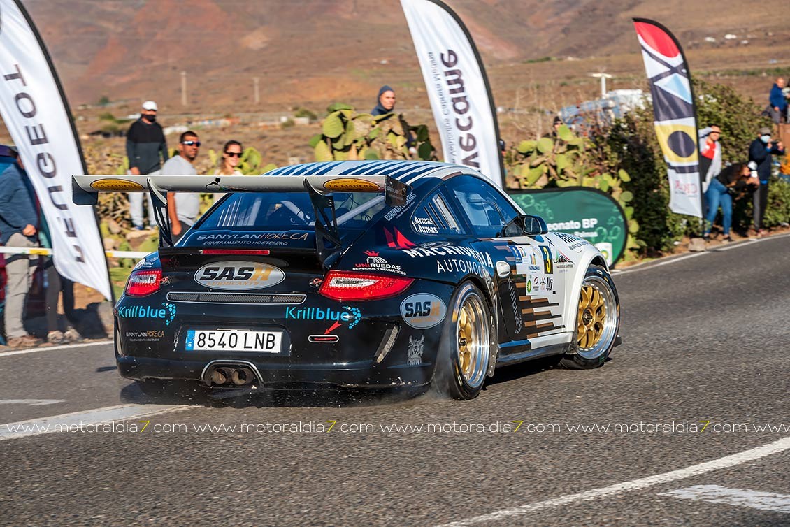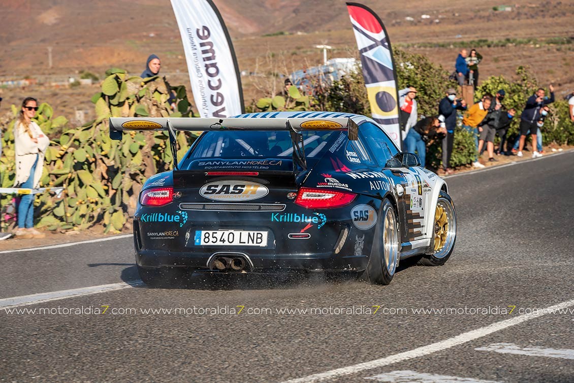 Aunque el Rally no empezaba bien para la familia Armas, a partir del segundo tramo del rally se ponían en cabeza de la prueba y firmaban la segunda victoria en Maspalomas. Pero se lo pusieron muy difícil Julio Martinez y Pedro Viera, que se mostraban my contentos a la llegada de la prueba por el rendimiento de las últimas evoluciones de su Porsche 911 GT3.