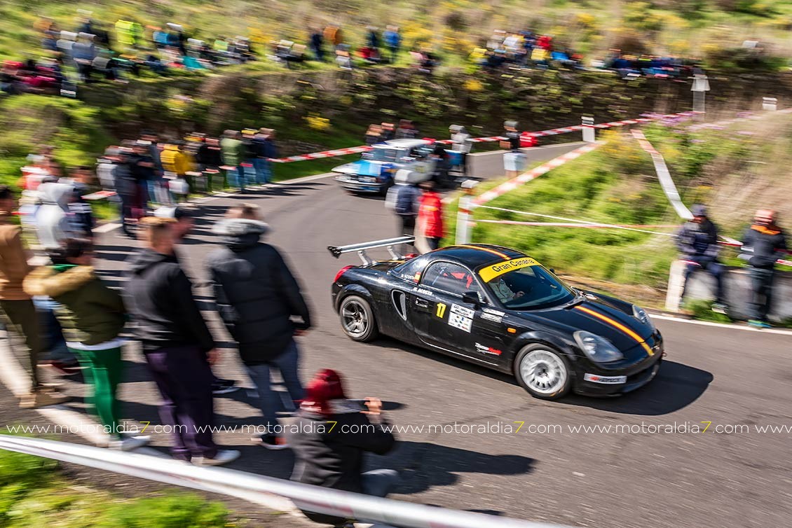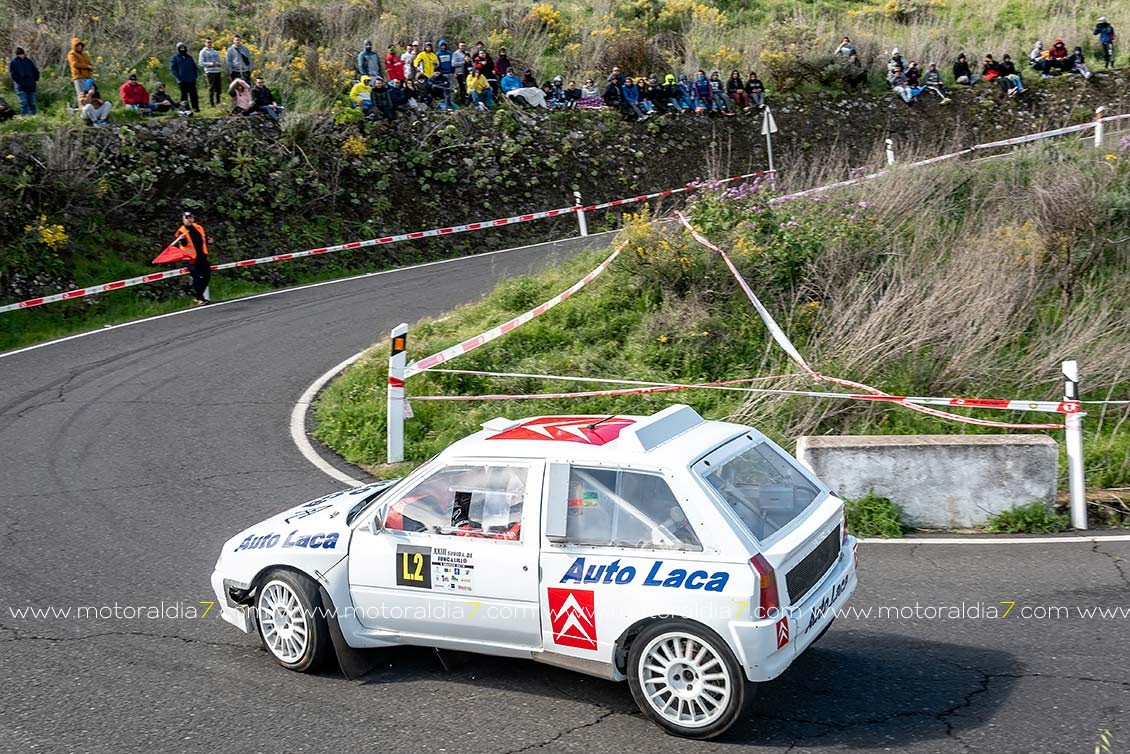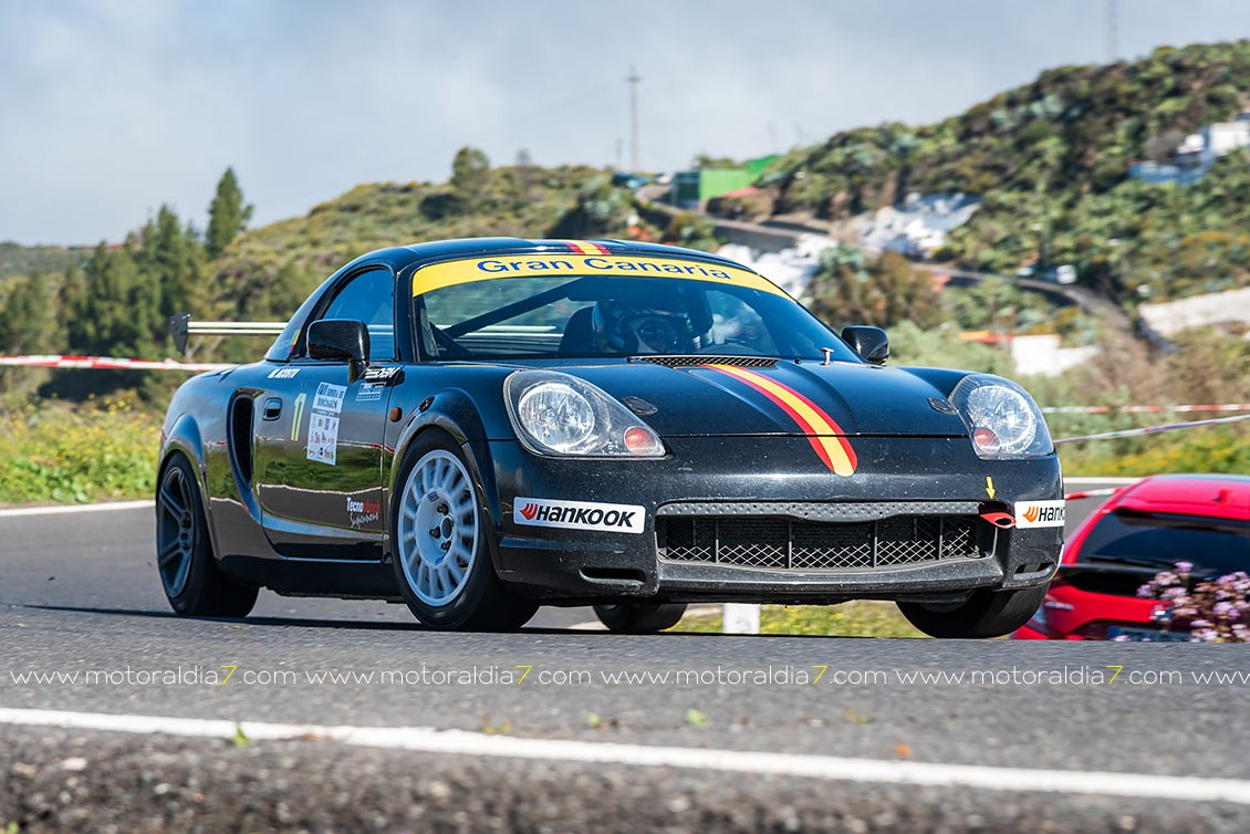 El piloto más veterano que ahora mismo compite en velocidad, Manuel Acosta, sigue demostrando que mantiene la competitividad con su Toyota MR2, con lo que se metía en la séptima posición de la general, justo por delante de José Rodríguez con un Renault Clio del grupo TA.