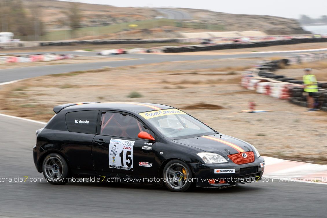 Una de esas bonitas luchas, que siempre se viven en el Circuito de Maspalomas, la protagonizaban Juany Jorge (SEAT León Super Copa) y Carmelo (BMW M3). Ambos peleaban por la segunda posición en todas las mangas, intercambiado posiciones hasta que Juany se ganaba la plaza en la tres mangas, dejando a Carmelo segundo en dos de ellas y séptima en la última del día.