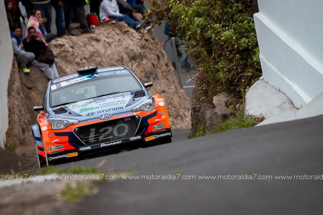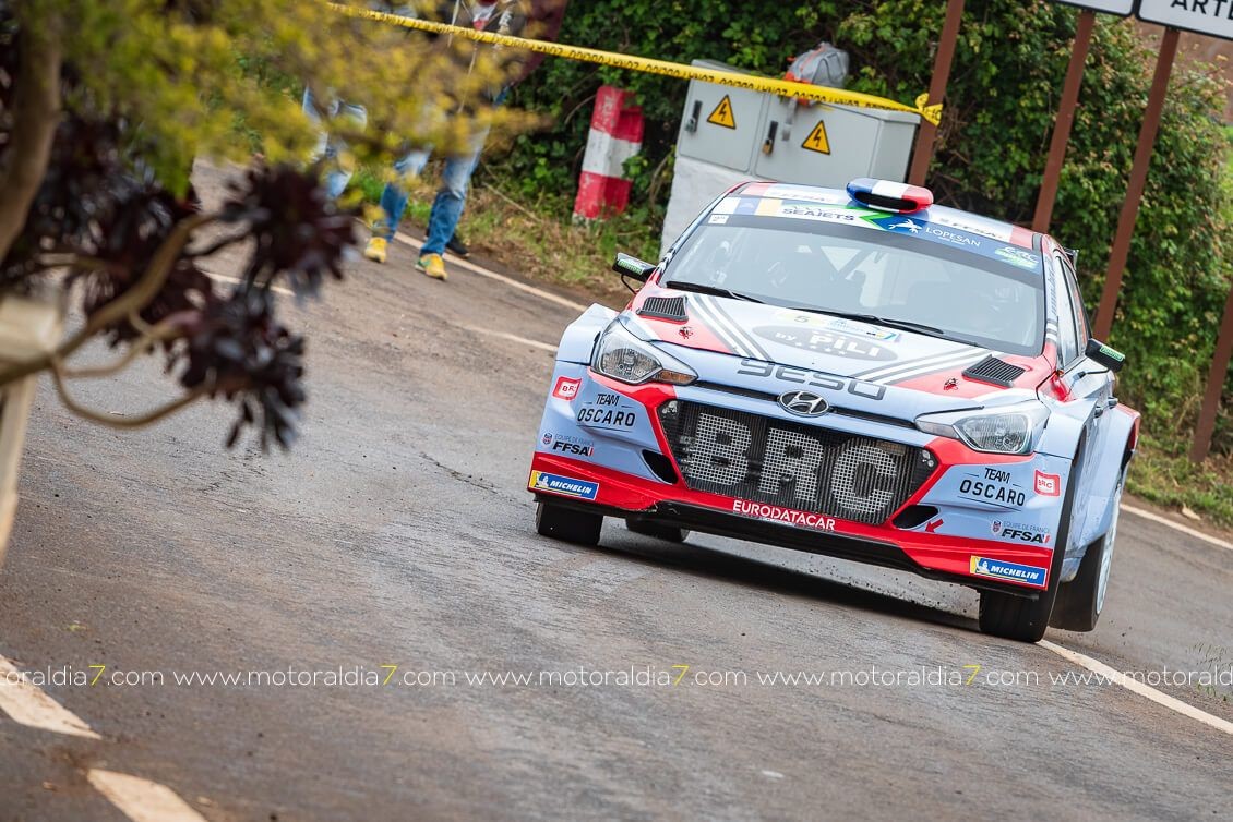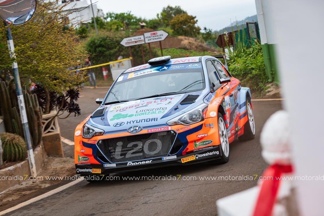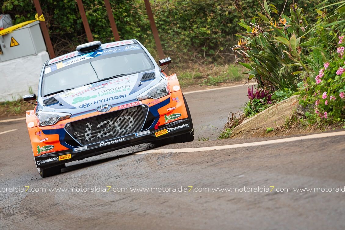 Ya en la sexta plaza, Pernía y Peñate sufrían muchísimo con la electrónica de su Hyundai i20 R5, que al final le permitía terminar por delante de un espléndido Toñi Ponce y Rubén González con el coche de Hyundai Canarias.