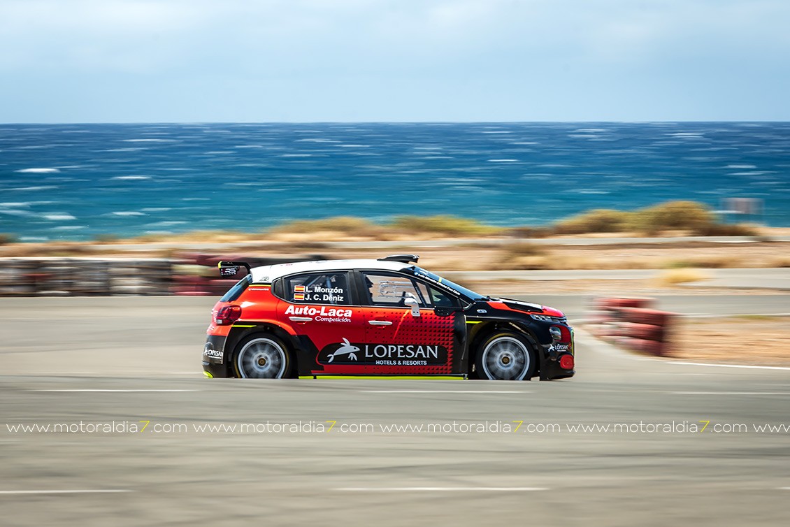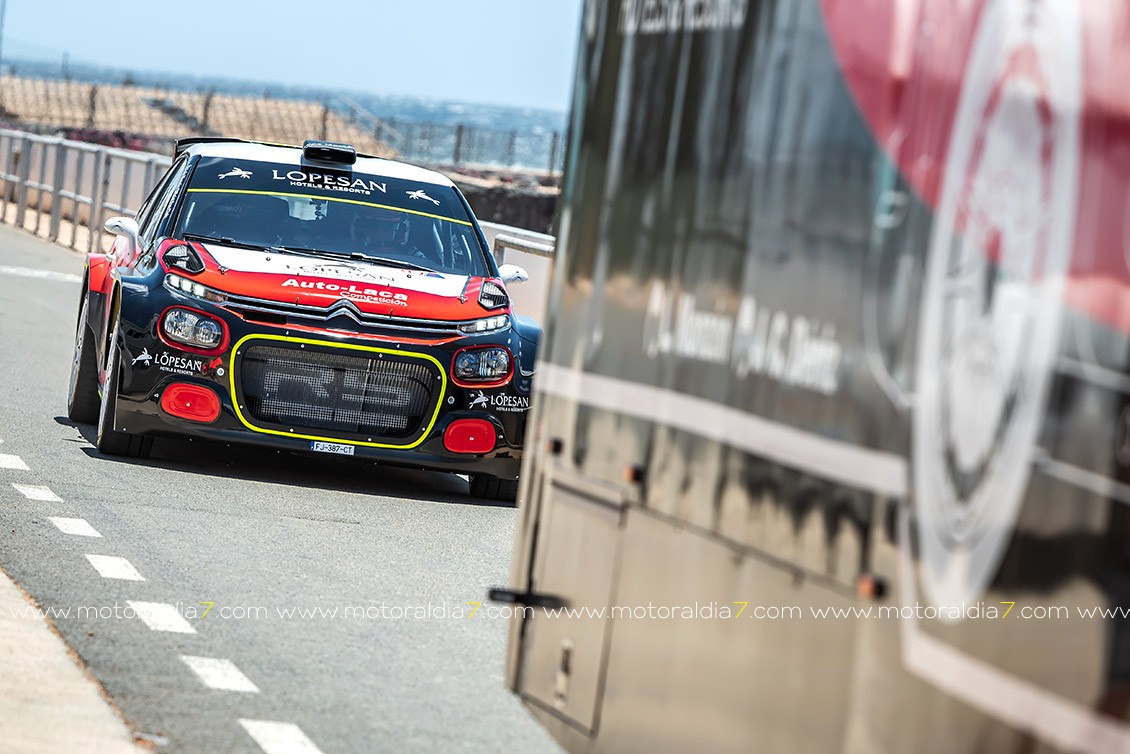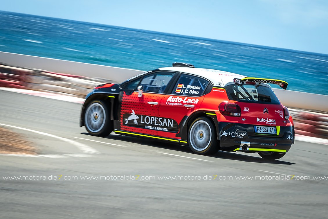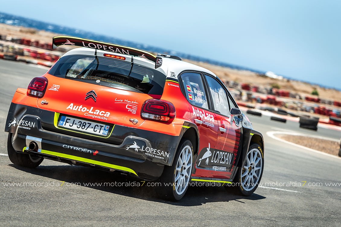 El piloto de Santa Brígida Luis Monzón pudo probar por primera vez su nuevo Citroën C3 R5 en el Circuito de Maspalomas. Un vehículo con “0” kilómetros que va a poner a su gusto con la ayuda de Enrique García Ojeda, piloto español que fue ganador del IRC hace unos años y que ahora tiene una empresa encargada de mantener vehículos de competición.