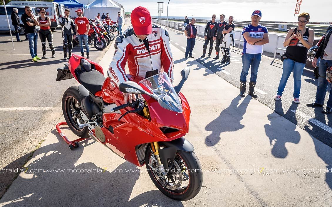 En definitiva pasamos la prueba de probar un “bicho” como este con ganas de seguir más y más rodando con ella, ya que resulta muy fácil de pilotar dada las prestaciones de las que disponemos en el puño derecho. Unas sensaciones que difícilmente se pueden sentir en la calle. Una moto como esta, está pensada para disfrutarla en circuito, por lo que el acierto de Ducati Canarias en hacer su presentación en el Circuito de Maspalomas y además de poder probarla en pista es de agradecer.