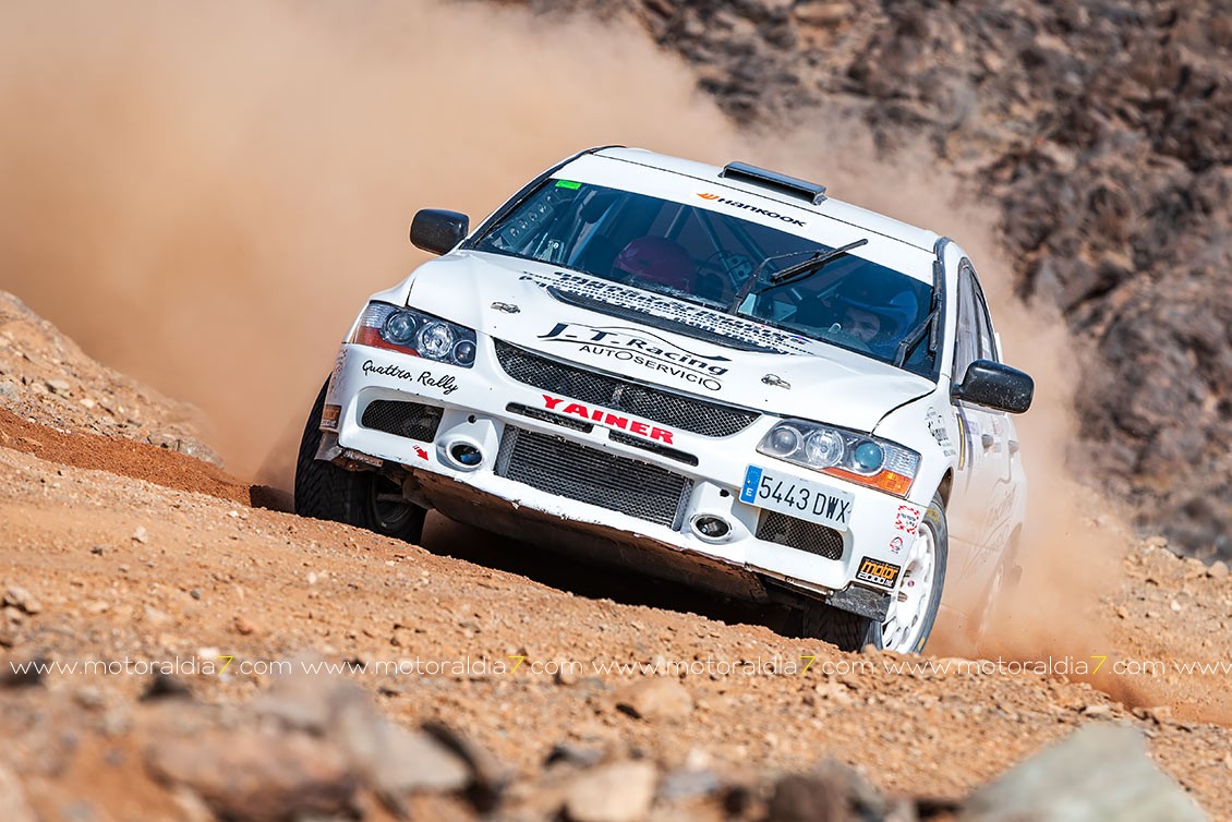 Los primeros líderes del rally fueron Juan Carlos Quintana-Yeray Mujica, que desde el primer tramo imprimieron un ritmo alto, aunque ya el piloto se quejaba de unos extraños en el motor de su Mitsubishi Lancer Evo X. Un problema que fue en aumento y debían retirarse antes de la salida del TC4, tramo donde tomaban el liderato Jesús Tacoronte-Mariola Sáez con su Evo IX, que gracias a su scratch en dicha especial de Juan Grande-Bahía Feliz, pasaban del tercer al primer puesto en la general en ese momento con 7,8 segundos de ventaja sobre Gustavo Sosa-Ariday Bonilla, que venían conservando ganas de correr para preservar la mecánica de su Skoda Fabia R5, mientras Borja Pérez-Jonathan Hernández tomaban el tercer lugar del podio con otro Evo X, pero ya a 42 segundos del nuevo líder.