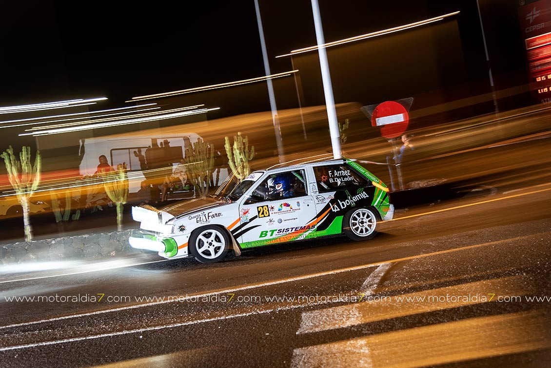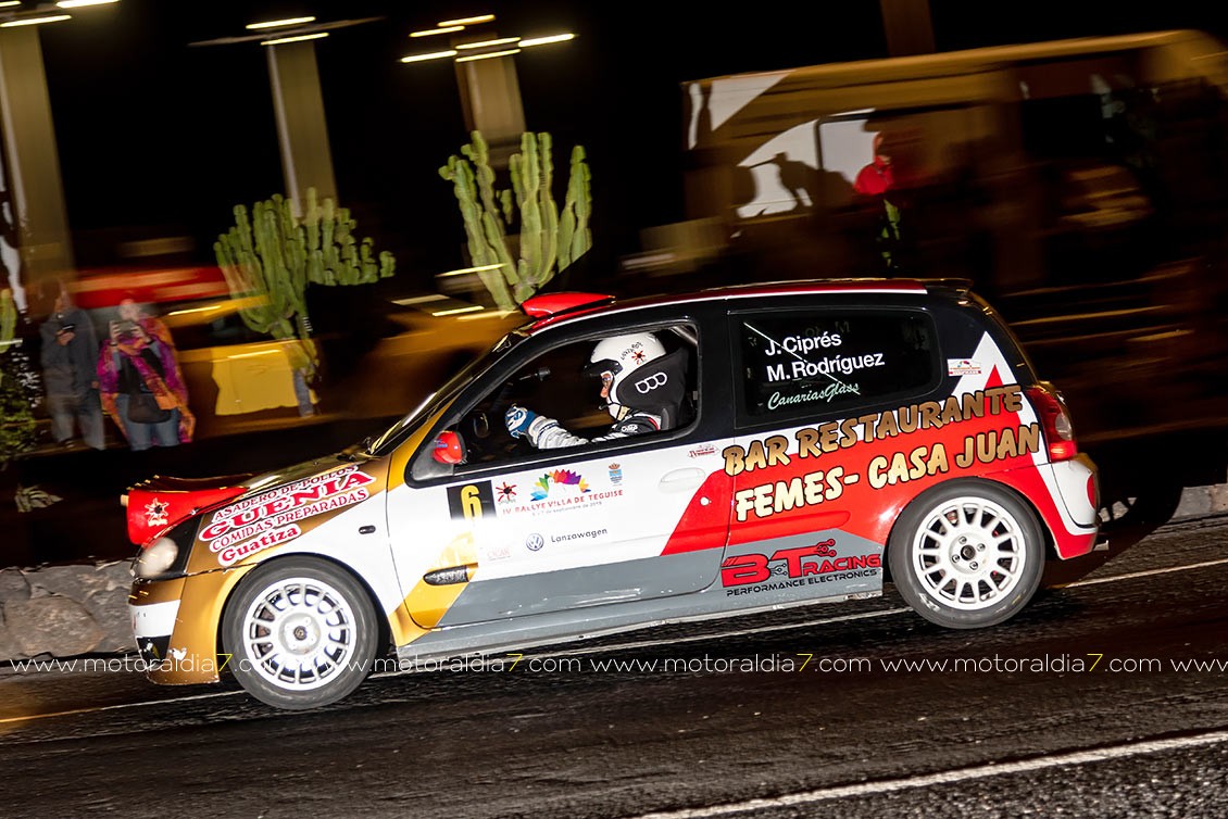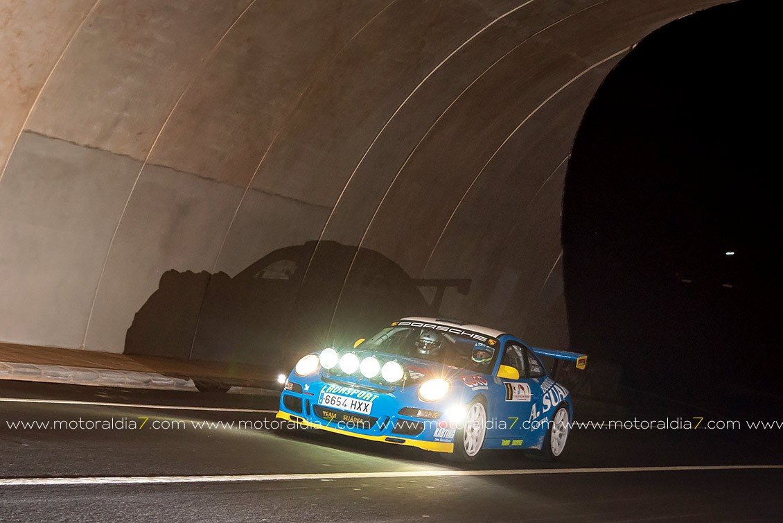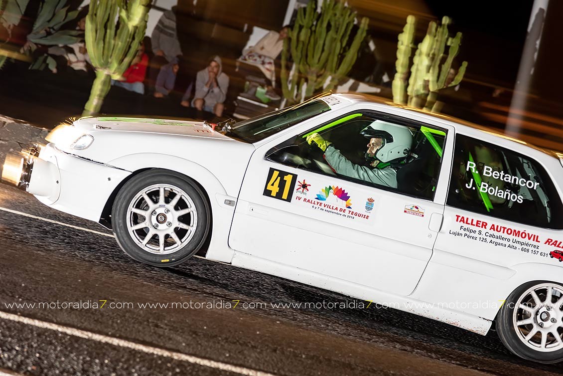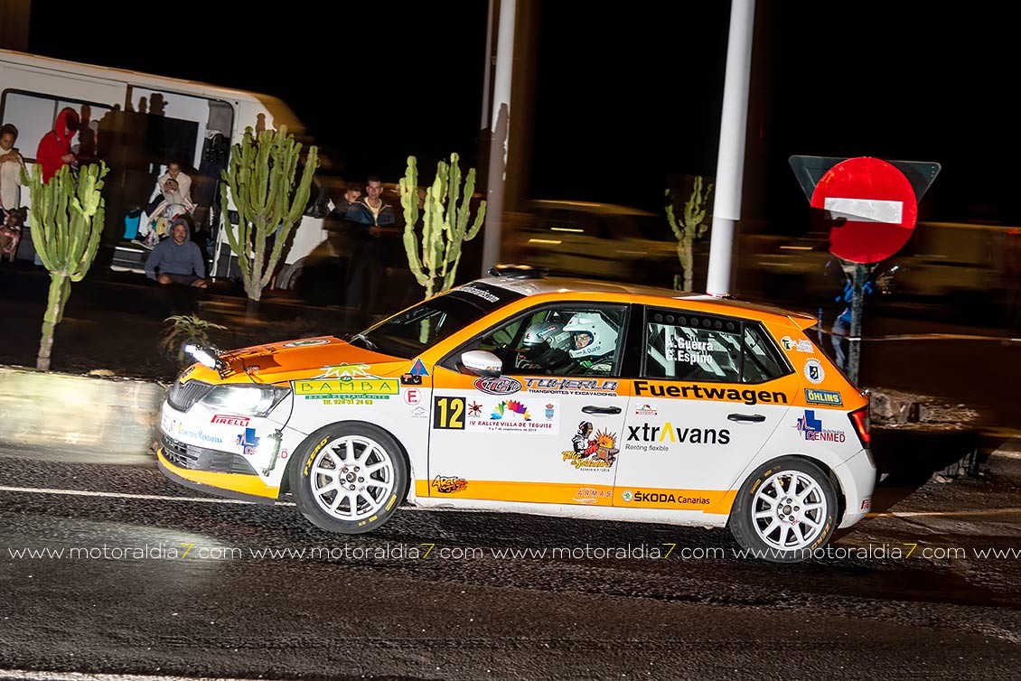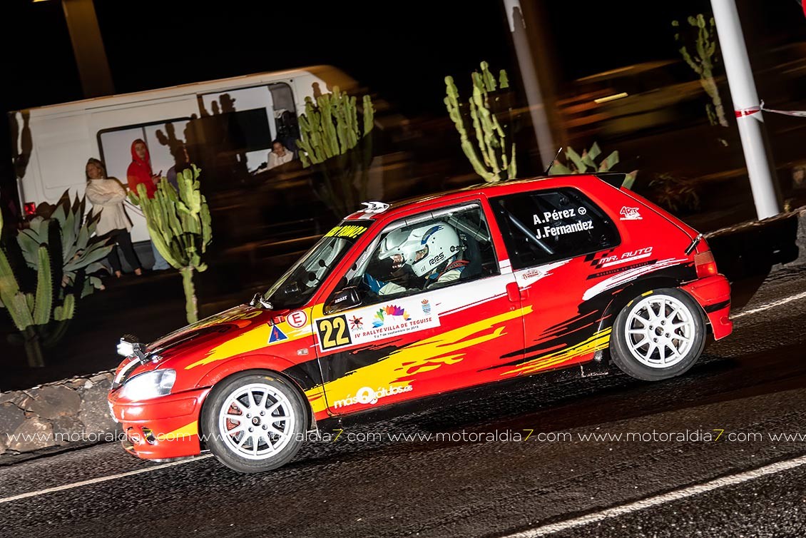 Ya con la noche sobre el cielo del norte dela isla de Lanzarote se disputaron los dos primeros tramos cronometrados del rutómetro compuesto por un total de ocho especiales. Esta primera parte del rallye tuvo de protagonista el tramo de Teseguite-Guatiza-El Mojón, con dos pasadas que han puesto de líder destacado al Porsche de Toñín Suárez y Jorge Cedrés, autor del scratch en el TC2. En la general, ya suman 16 segundos de ventaja sobre los segundos clasificados provisionales, Suso Lemes-Ayose Barrera con SEAT Ibiza y 1,1 segundos más sobre el Renault Megane de Adrián Betancort-Jorge Umpiérrez, terceros en el teórico podio después de la sección nocturna de la prueba. Este último equipo se adjudicó el triunfo de la última edición del “Villa de Teguise”, después de que fuera penalizado Toñín Suárez por unas irregularidades en su montura, por lo que sin duda este año quiere quitarse la “espinita” y volver a ser el más rápido.