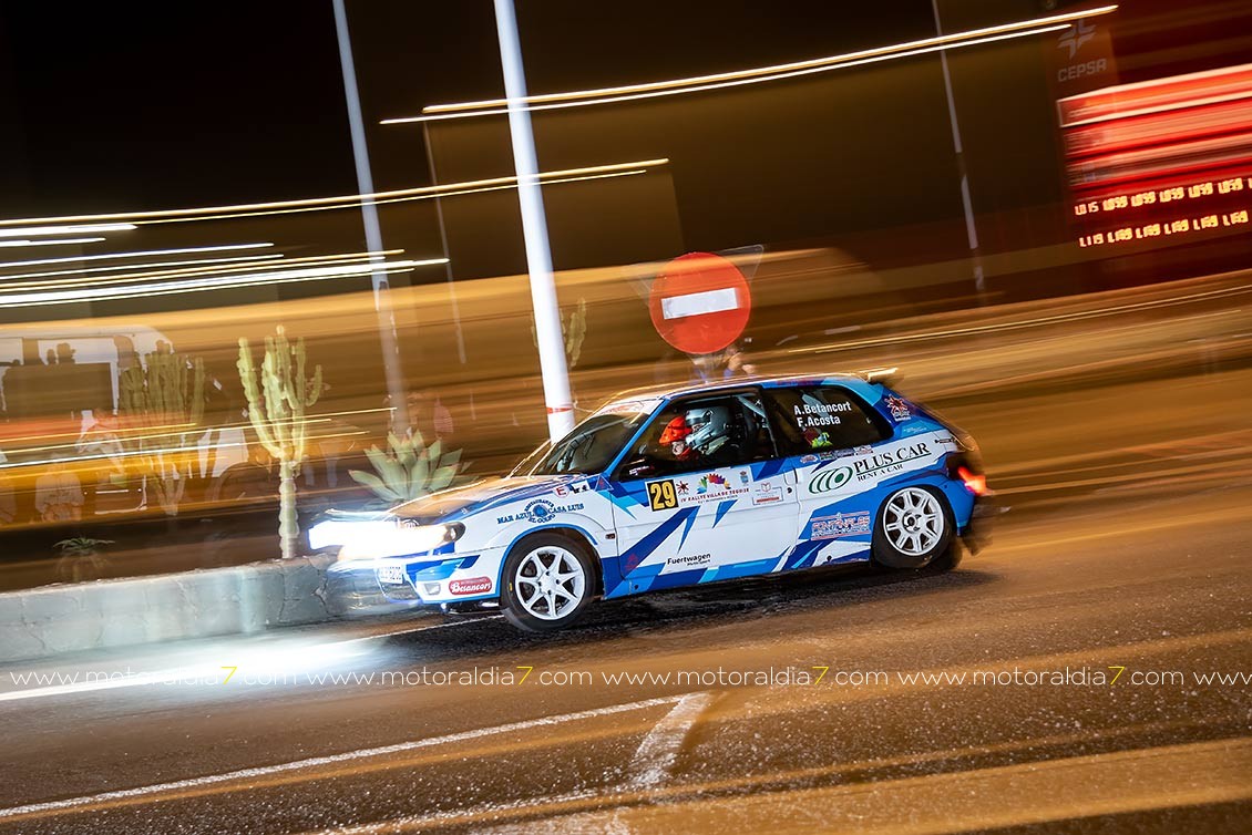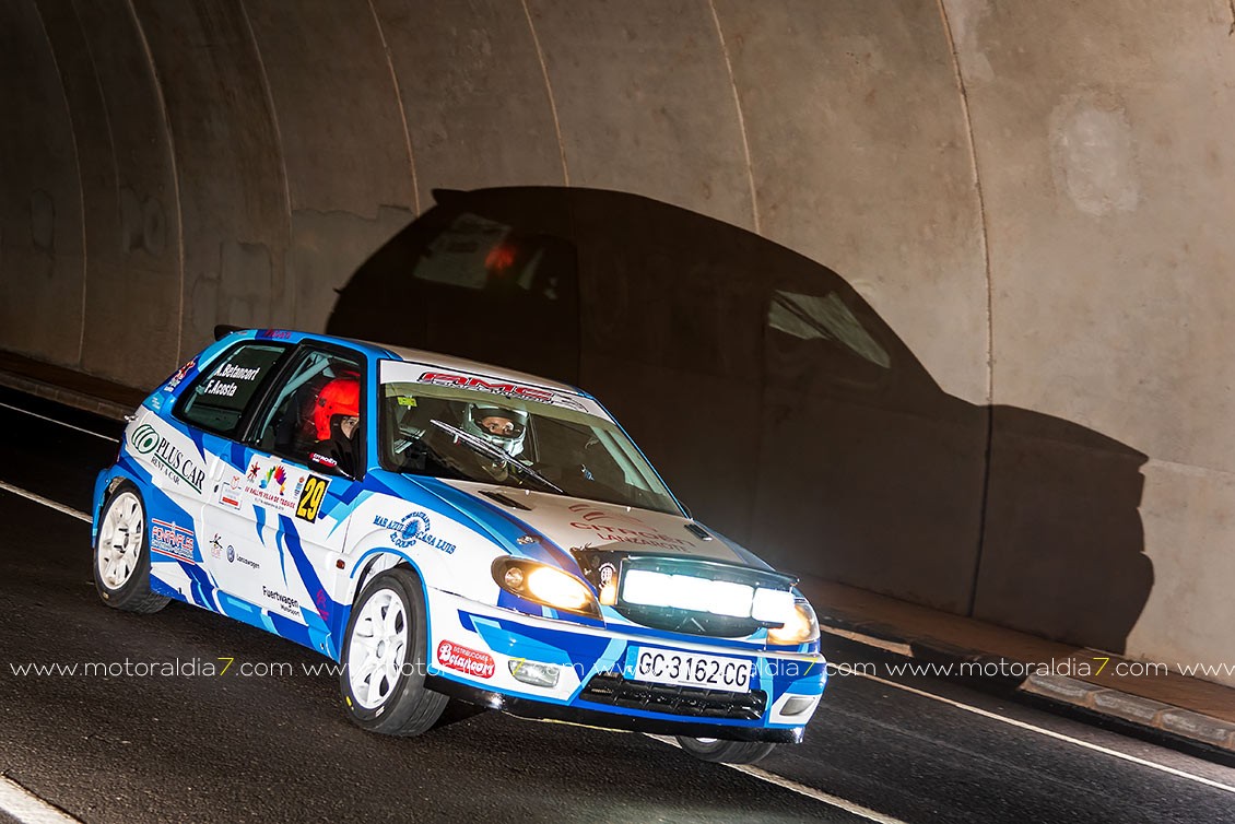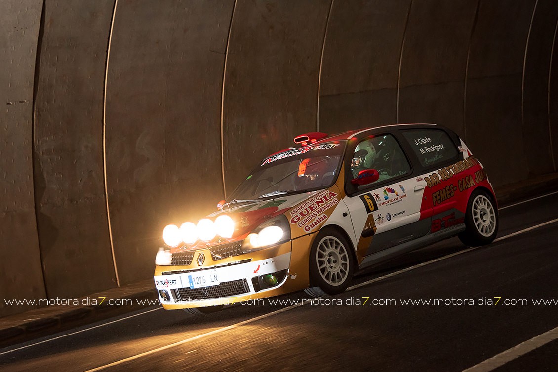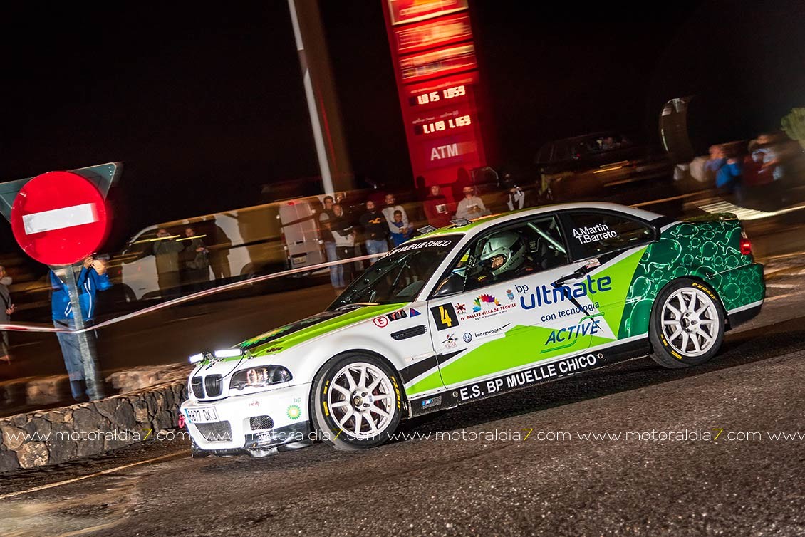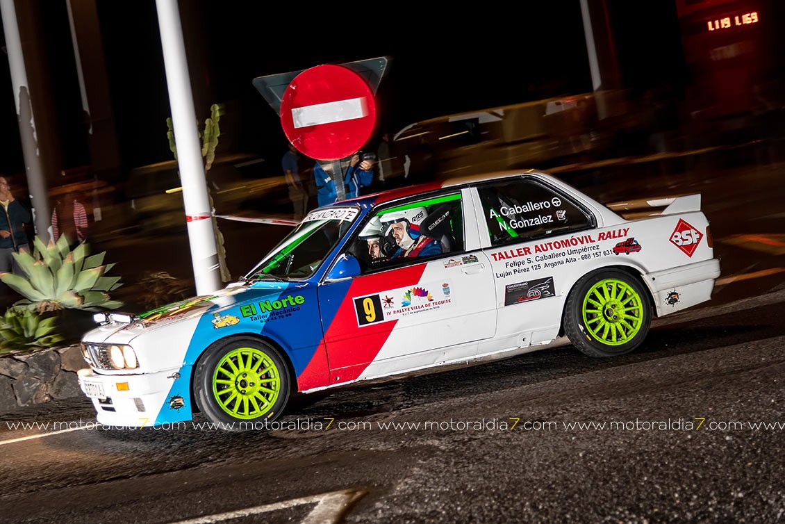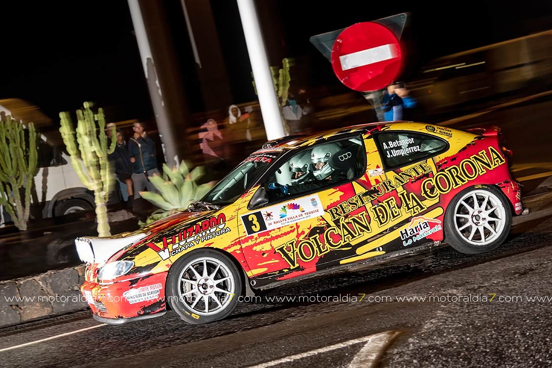 Ya con la noche sobre el cielo del norte dela isla de Lanzarote se disputaron los dos primeros tramos cronometrados del rutómetro compuesto por un total de ocho especiales. Esta primera parte del rallye tuvo de protagonista el tramo de Teseguite-Guatiza-El Mojón, con dos pasadas que han puesto de líder destacado al Porsche de Toñín Suárez y Jorge Cedrés, autor del scratch en el TC2. En la general, ya suman 16 segundos de ventaja sobre los segundos clasificados provisionales, Suso Lemes-Ayose Barrera con SEAT Ibiza y 1,1 segundos más sobre el Renault Megane de Adrián Betancort-Jorge Umpiérrez, terceros en el teórico podio después de la sección nocturna de la prueba. Este último equipo se adjudicó el triunfo de la última edición del “Villa de Teguise”, después de que fuera penalizado Toñín Suárez por unas irregularidades en su montura, por lo que sin duda este año quiere quitarse la “espinita” y volver a ser el más rápido.