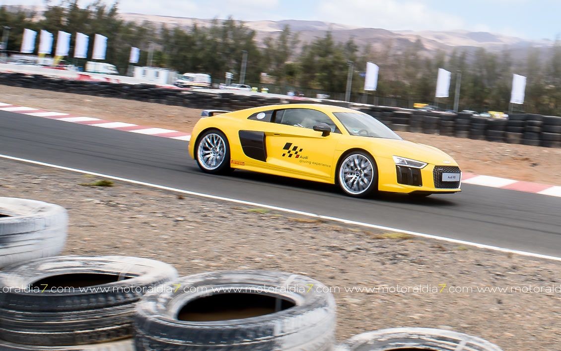 Pero no todo era la seguridad y Audi Canarias había preparado una gratísima sorpresa. Una experiencia abordo de un Audi TT RS y un impresionante Audi R8 Plus. Bien es verdad que me hubiera gustado ponernos a sus mandos (espero que Audi Canarias lo solucione), pero la experiencia estuvo muy bien, ya que fuimos a la derecha de pilotos profesionales y pudimos ver las bondades de estos coches de 400 y 610 CV de potencia, ambos con tracción Quattro a ritmo “casi” de carreras.