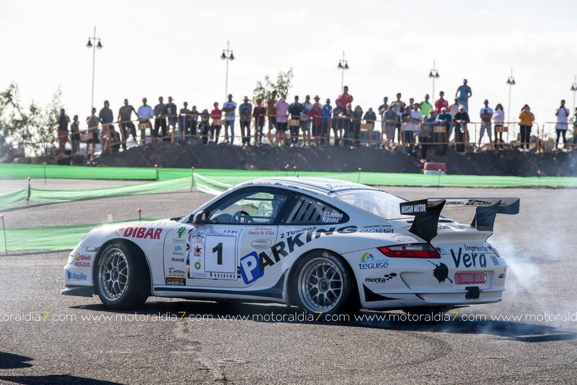 Bonita victoria (hace la octava) de Yeray Lemes en el Rally de su casa. Ganó la 39º edición del Rally Orvecame Isla de Lanzarote acompañado a la derecha por el jovencísimo Raúl Hernández, en un Porsche alquilado a un piloto palmero.