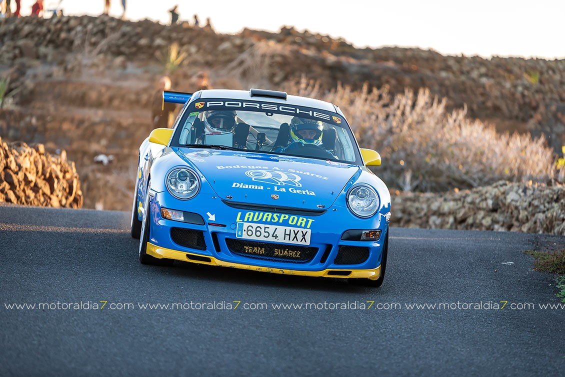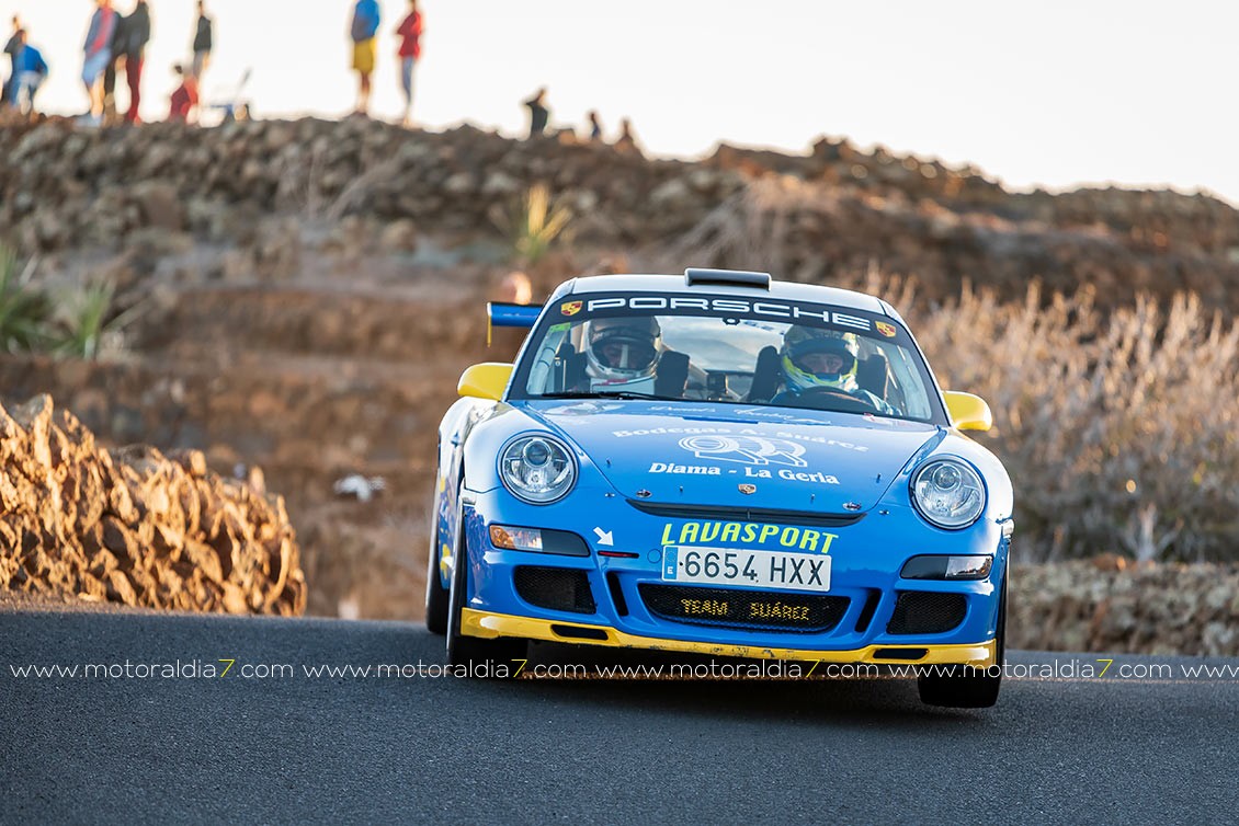 Ya en la sexta posición se clasificaba Toñin Suárez y Jorge Cedres que también sufría su parte en un Rally Isla de Lanzarote muy duro para todos, al final lograba llevar a meta a su Porsche 911 GT3.
