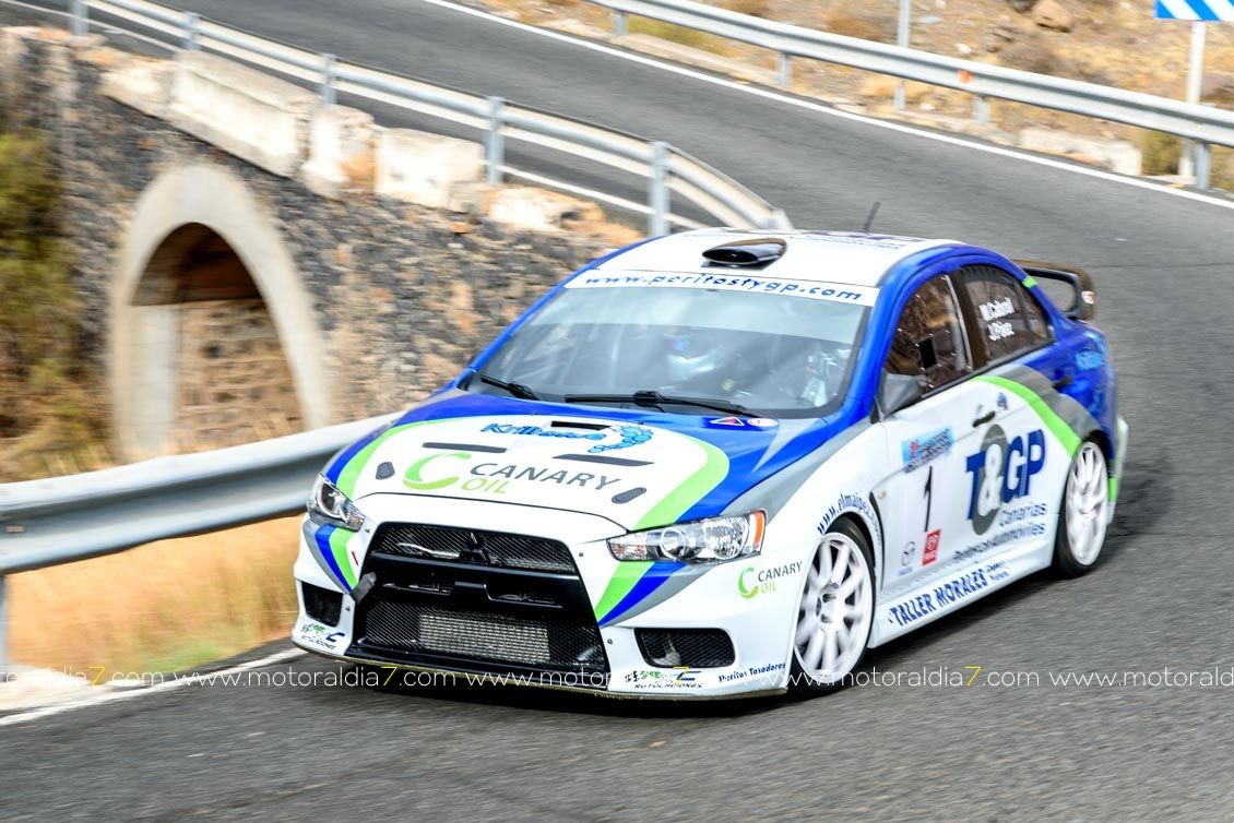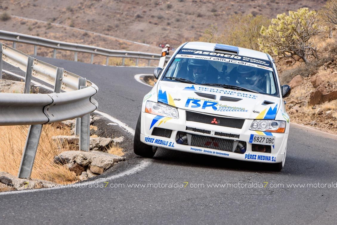 La tercera plaza y en tierra de nadie, Ayose Benítez y Joel Benítez estaban contentos con sus prestaciones con su Mitsubishi Evo VII, aunque una vibración en el tren delantero les avisaba de tener los discos de frenos en mal estado.