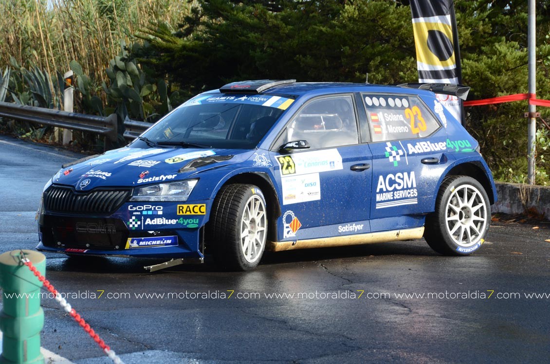 Pepe López y Borja Rozada protagonizaban un prematuro abandono al golpear su Citroën C3 R5 con una palmera en el primer tramo cronometrado del rally. José Antonio Suárez y Alberto Iglesias, sus principales rivales por el título del Campeonato de España de Rallies de Asfalto (Skoda Fabia Rally2 Evo) son duodécimos a más de un minuto de Nil Solans. Así las cosas, en el apartado nacional, Solans-Moreno mandan tanto en el CERA como en el Supercampeonato de España de Rallies del que se pueden proclamar campeones.