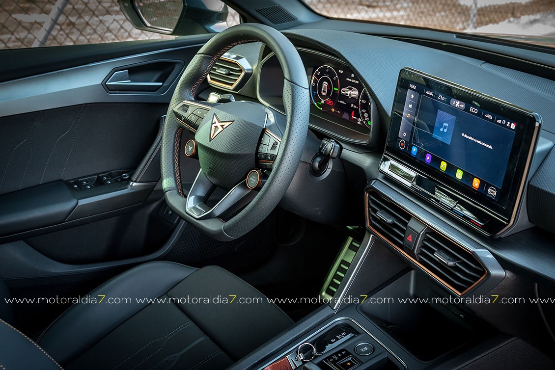 Gracias a CUPRA Las Palmas, pudimos probar el nuevo León e-Hybrid en su versión de 245 CV (motor de combustión de 150 CV y motor eléctrico de 115 CV) con una batería de 13 kWh, lo que le da una autonomía eléctrica de entre 50 a 60 km, según el tipo de conducción y terreno.