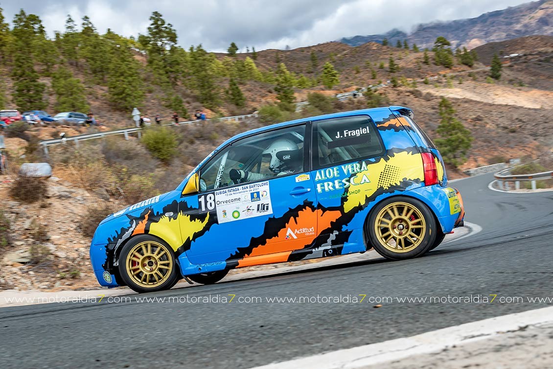 En barquetas se impuso claramente René Santana con la Silver Car S2 y un registro de 3.00.6, el mejor tiempo absoluto de la subida, con 1,9 segundos sobre José Luis Rodríguez y su Silver S3. Ninguno de los dos pudo terminar la primera manga de Fataga, que la ganaba Bentejuí Rodríguez con la Norma, tercero en la categoría 1 o de monoplazas.