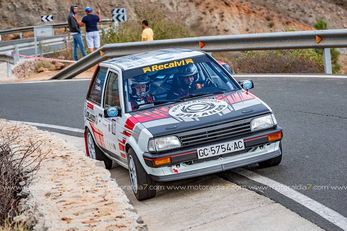 José Calderín subía hasta la quinta plaza con el rápido "soplillo", seguido de Juan Betancort con el Toyota y un sorprendente Aridane Almeida con el SEAT Ibiza., sexto absoluto. Esta parte de la clasificación la ocuparon pilotos menos habituales, continuando con David González, Alejandro Betancort y Roberto Sánchez.
