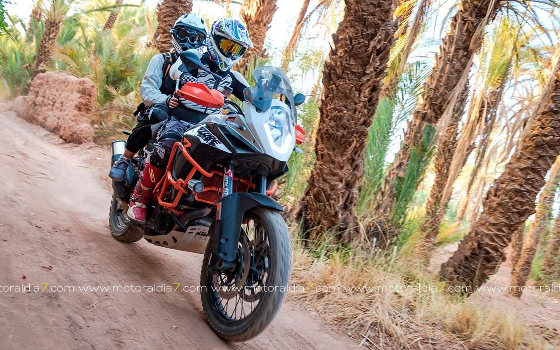 Para llegar a nuestro Hotel este día, Samir nos tenia preparada una pista de tierra bastante fácil y ancha. Era su forma de ver el nivel de cada uno en conducción en tierra, para poder planificar las rutas de los días siguientes. Todos pasamos el examen con nota, incluidos Javi y Lidia que hacían el viaje en pareja sobre su KTM 1190. Incansable Lidia, que nos sorprendía a todos por sus cualidades como acompañante de Javi, y daba gusto verlos a ambos en tierra.