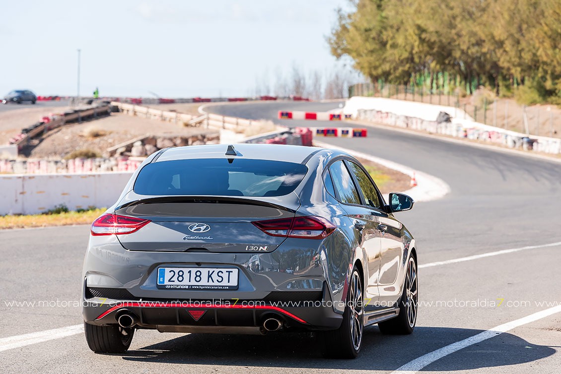 El logotipo N simboliza una chicane, la parte de la pista en la que el i30 Fastback N logra la máxima tracción, precisión y sensación. El elegante y radical coupé de cinco puertas de Hyundai siente pasión por las curvas y eso se ha notado en las vueltas que pudimos dar en el Circuito de Maspalomas.