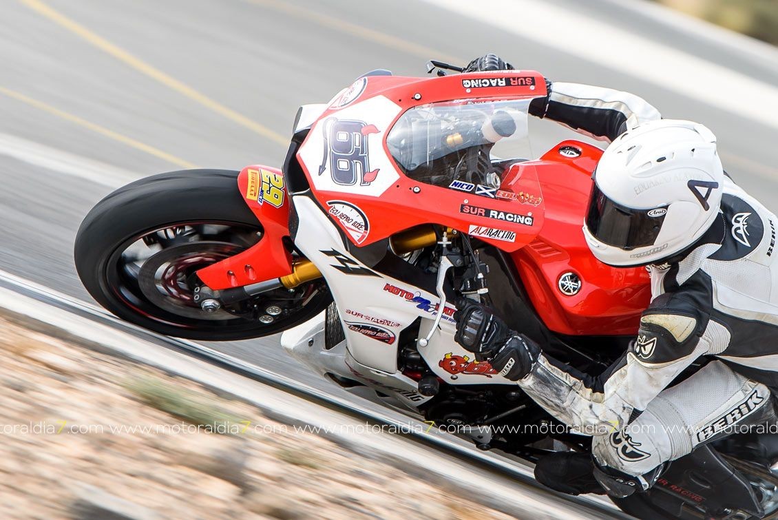 No hubo tregua y después de que Eduardo Alayón se colocara en cabeza con su Yamaha R1 (Motowatio Sur Racing), Fran Alonso llegó hasta su posición e incluso llegó a pasarlo en la curva de bajada en contrameta, antes de que Alayón le devolviera la jugada. A partir de ahí, las posiciones se mantuvieron inalteradas hasta el primer relevo y repostaje en boxes. Hasta ese momento, Alayón era primero, seguido por Alonso, David Cabrera (Kawasaki ZX-10R MC2 Competición) y Tati Santana (Suzuki GSX-R1000 Motul). El cuarto lugar era para la primera Supersport, la de los Huertas, seguida muy de cerca por la primera moto Dúo, la de Bolaños /Trujillo.