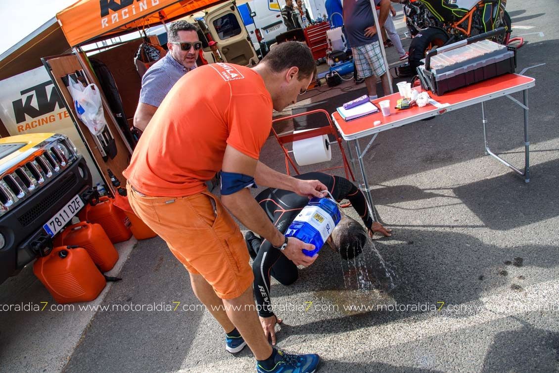 Los primeros problemas llegaron para la moto 25 de Darga Express / Pole Position de Germán González y Santiago Almeida, por una salida de pista. También se fue rezagando la Suzuki de Tati y Koke Gómez, por problemas en un inyector que al final les hizo abandonar la carrera pasada la mitad de carrera, justo cuando comenzaban a consolidarse las importantes diferencias. Los Alonso le sacaban dos vueltas al equipo de Alayón/Bethencourt. Terceros, y primera Supersoprt, iban los Huertas, con una estrategia muy bien estudiada. Sorprendentemente el cuarto lugar era para los jovencísimos Bolaños/Trujillo que giraban en la misma vuelta que sus predecesores.