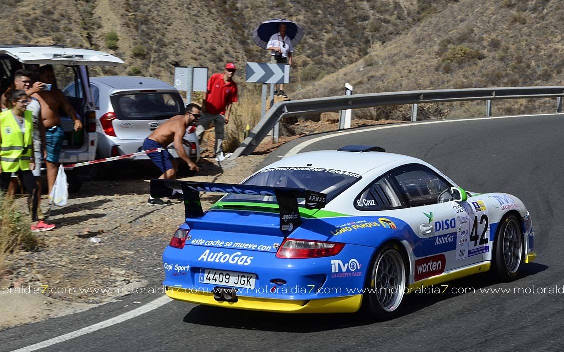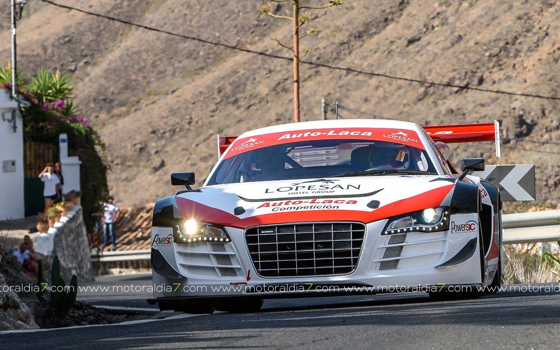 Aunque no lo tuvo nada fácil, primero porque su Audi R8 LMS hacía muchas veces tope de suspensión y además el control de tracción lo dejaba sin potencia en las curvas más comprometidas. El segundo tema fue las ganas de ganar de Enrique Cruz, que literalmente se la jugaba con el Porsche 911 GT3 AutoGas en la primera manga oficial de Fataga, pero un golpe en la parte trasera izquierda, tras una semi trompo, le hacían perder su oportunidad y se conformaba con la segunda plaza en Fataga.