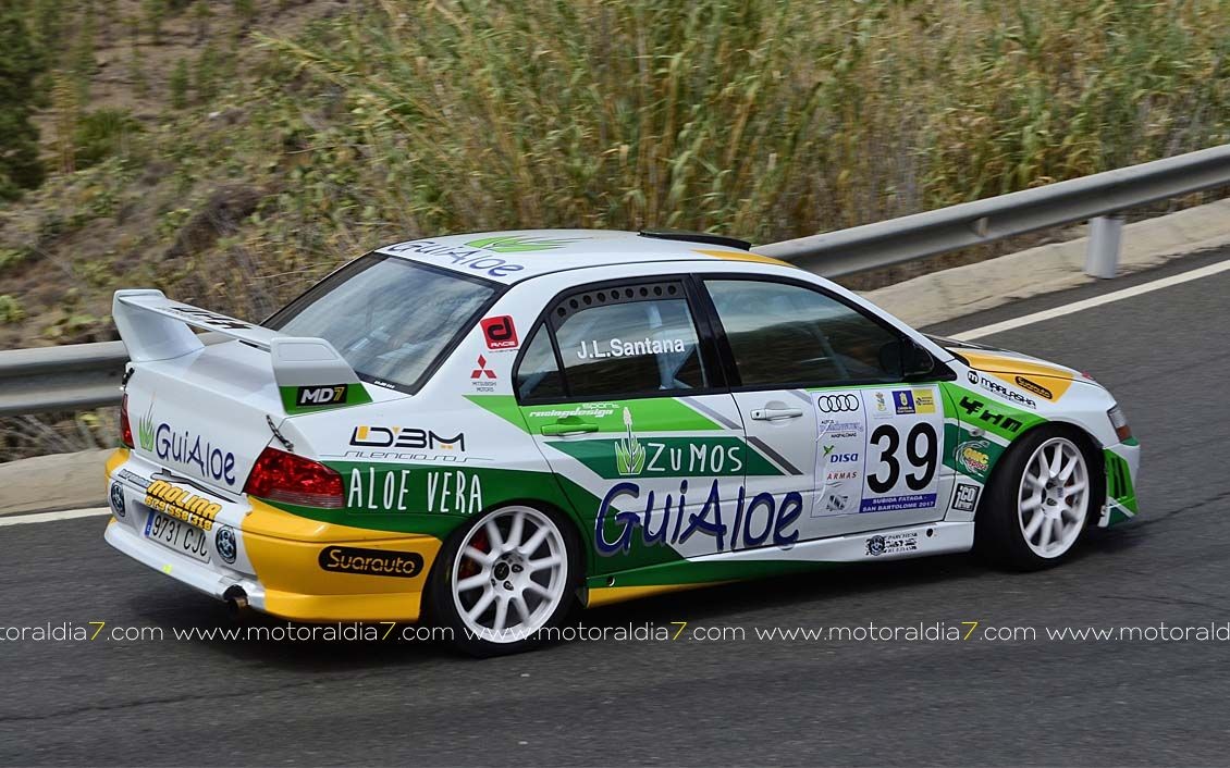 A Juan Luis Santana, los continuos problemas del tren delantero de su Evo VII lo dejaban en la sétima posición en Fataga, pero con el tema resulto era cuarto en San Bartolomé.