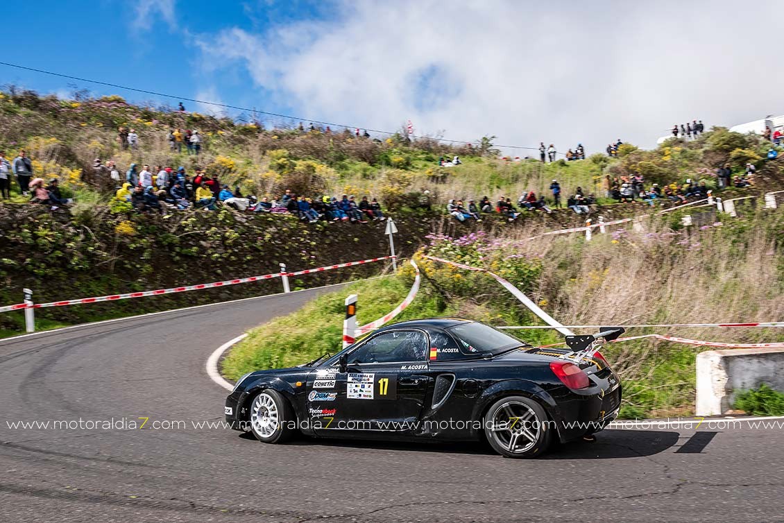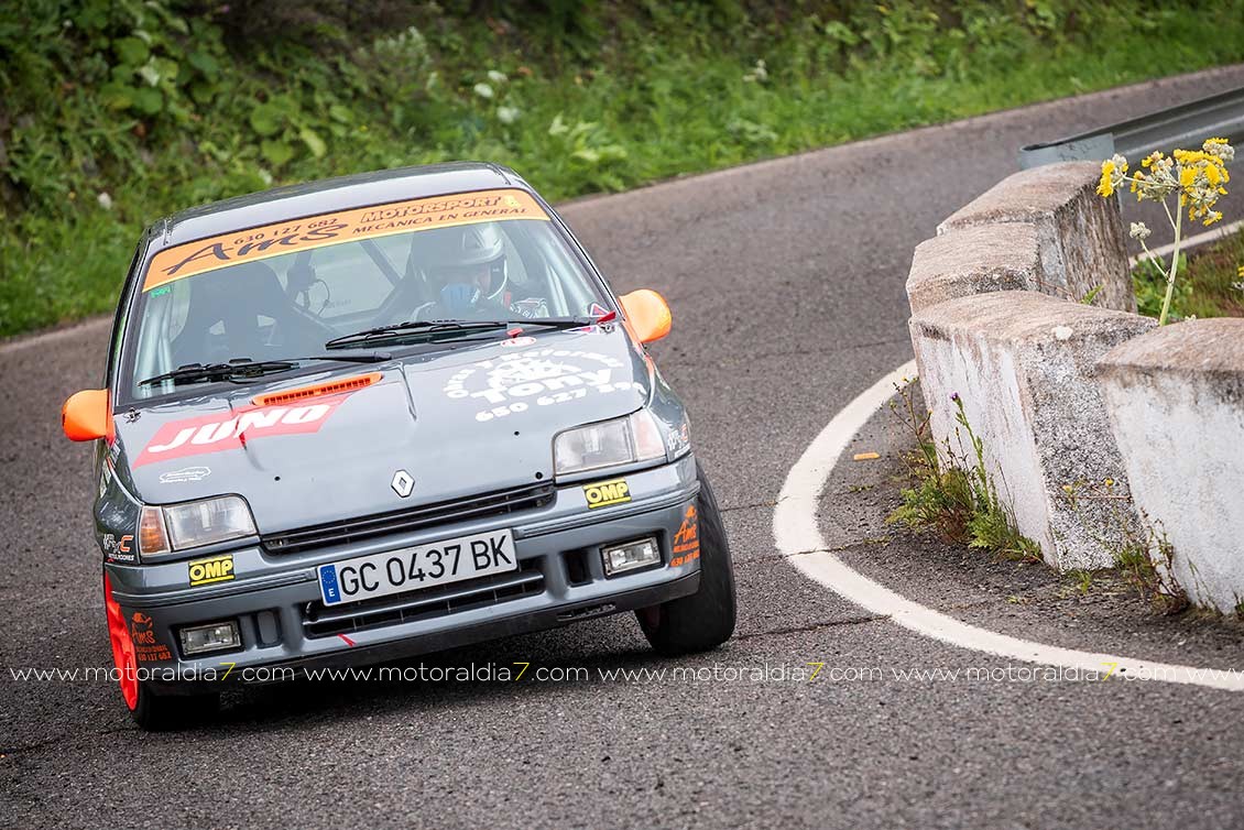 El piloto más veterano que ahora mismo compite en velocidad, Manuel Acosta, sigue demostrando que mantiene la competitividad con su Toyota MR2, con lo que se metía en la séptima posición de la general, justo por delante de José Rodríguez con un Renault Clio del grupo TA.