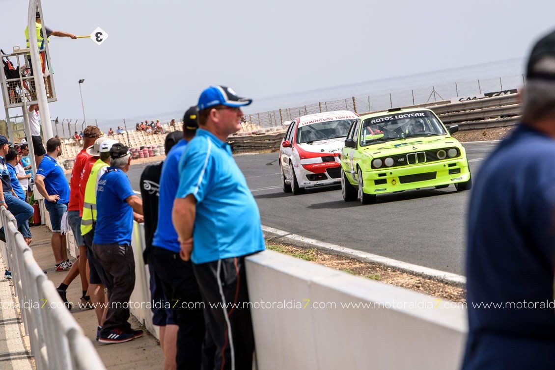 Una de esas bonitas luchas, que siempre se viven en el Circuito de Maspalomas, la protagonizaban Juany Jorge (SEAT León Super Copa) y Carmelo (BMW M3). Ambos peleaban por la segunda posición en todas las mangas, intercambiado posiciones hasta que Juany se ganaba la plaza en la tres mangas, dejando a Carmelo segundo en dos de ellas y séptima en la última del día.