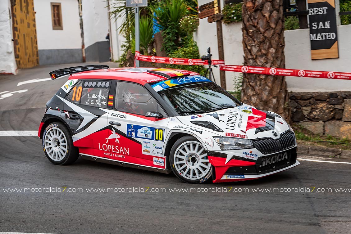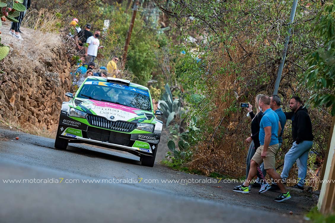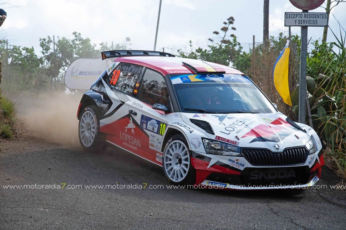 En la novena plaza se colaban Luis Monzón y José Carlos Déniz con el Skoda Fabia Rally2 que iban remontando poco a poco y lograban estar entre los diez primeros de la clasificación de la general su meta para esta primera etapa.