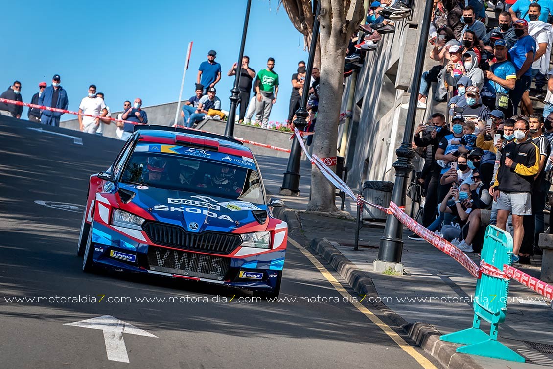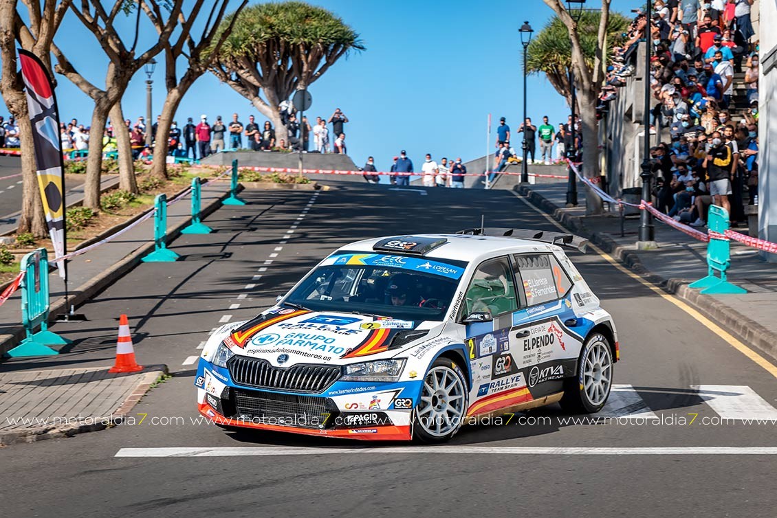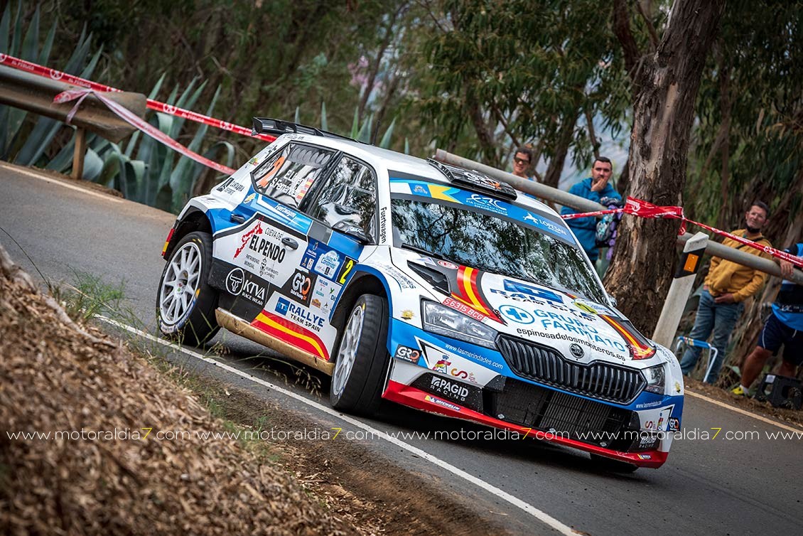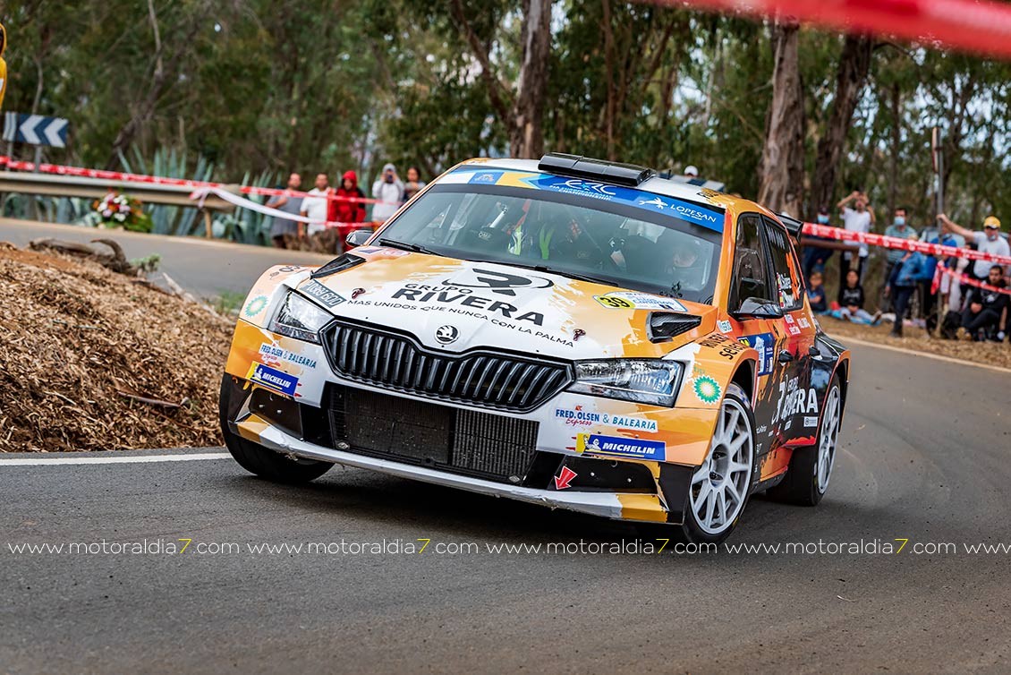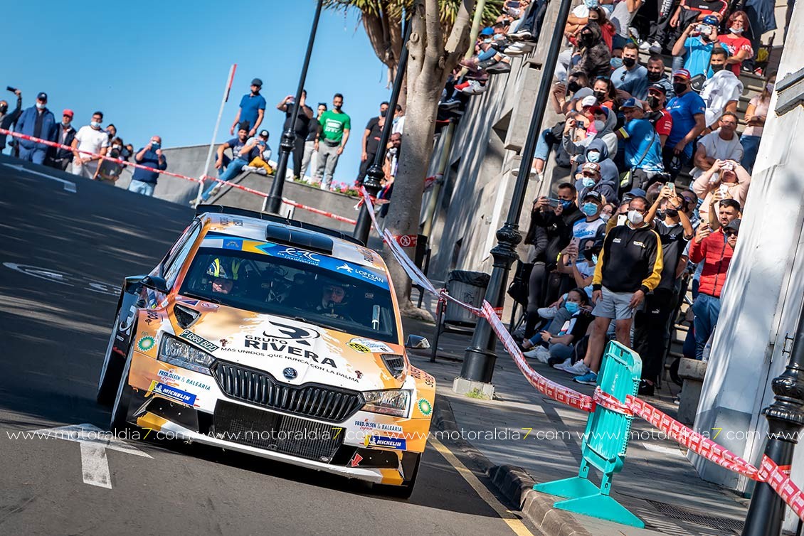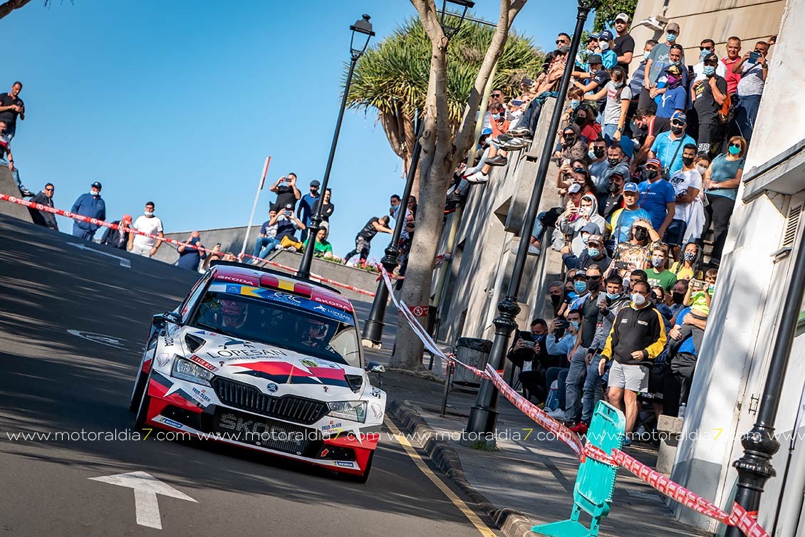 Homenajeando a su isla de La Palma, Miguel Suarez con Dani Sosa a la derecha fue el cuarto equipo canario clasificado desde la undécima plaza de la general con su Skoda Fabia Rally2.