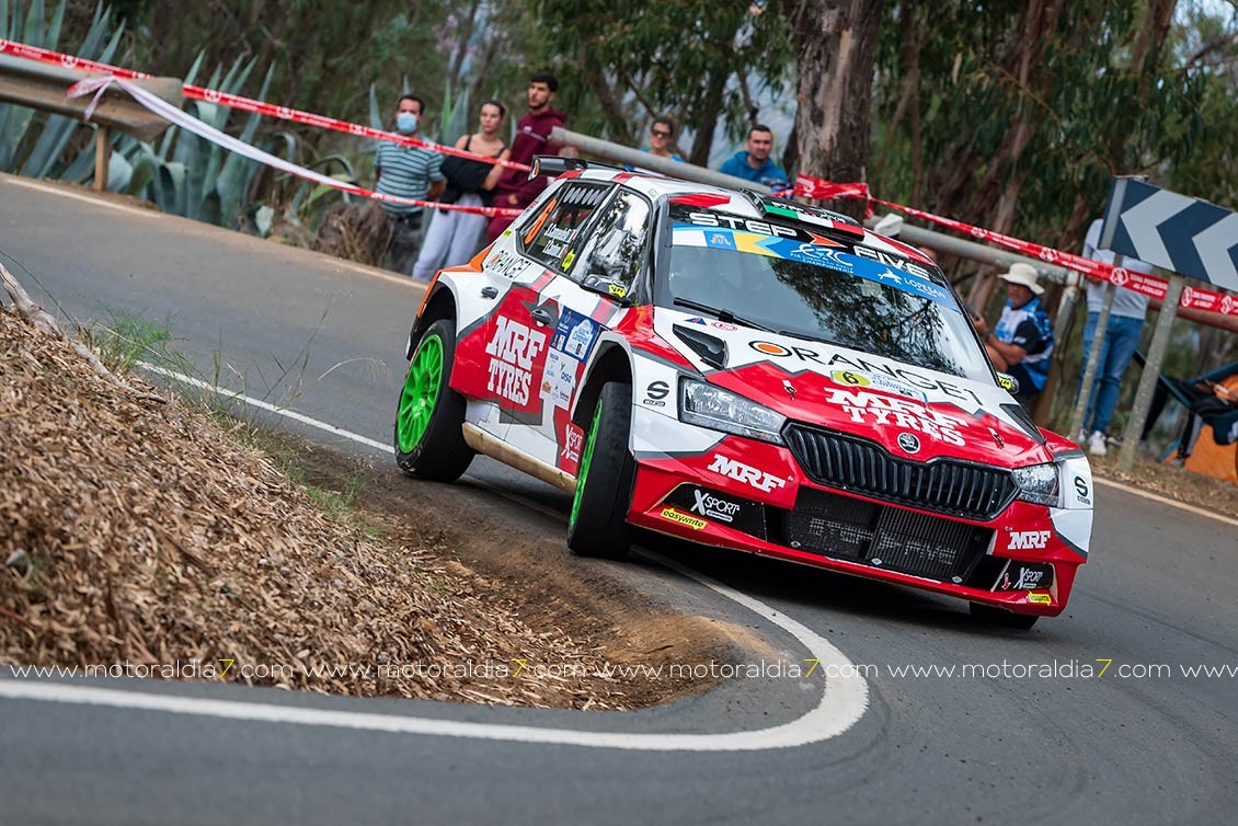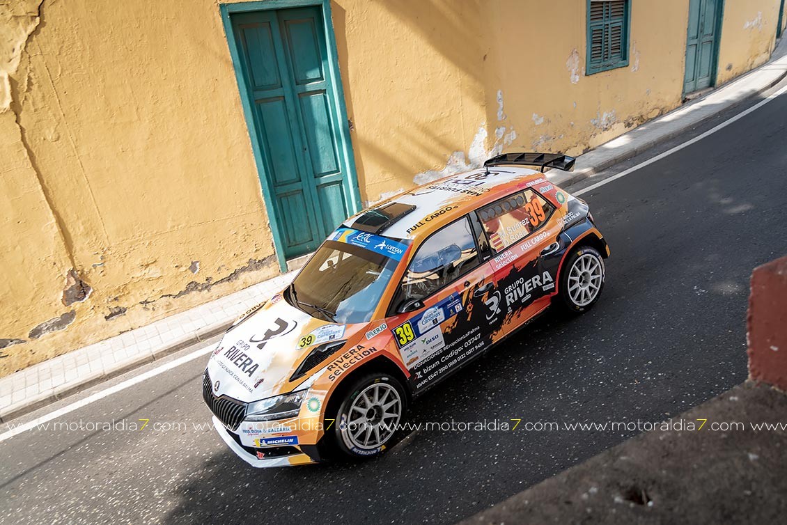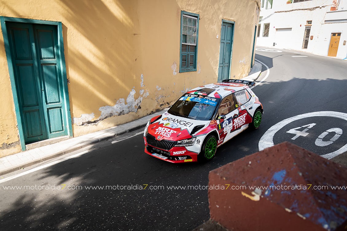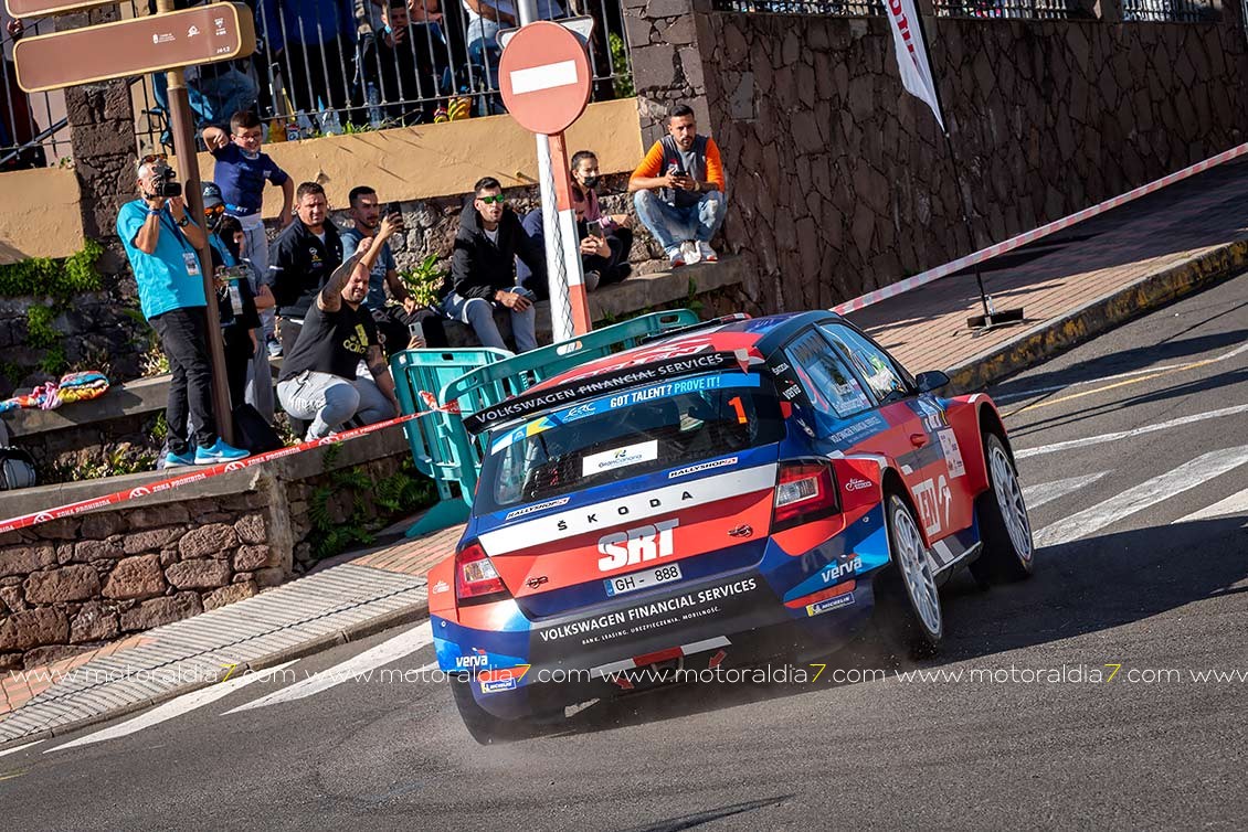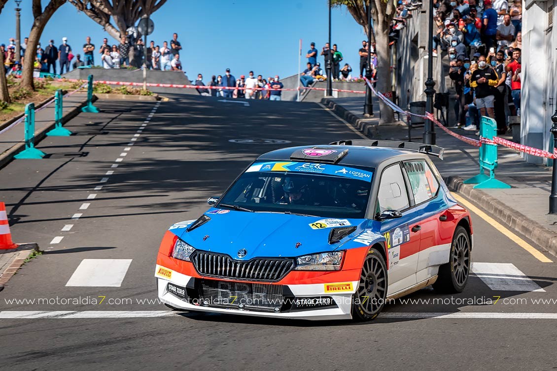 Homenajeando a su isla de La Palma, Miguel Suarez con Dani Sosa a la derecha fue el cuarto equipo canario clasificado desde la undécima plaza de la general con su Skoda Fabia Rally2.