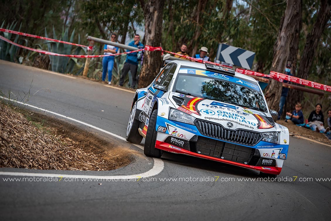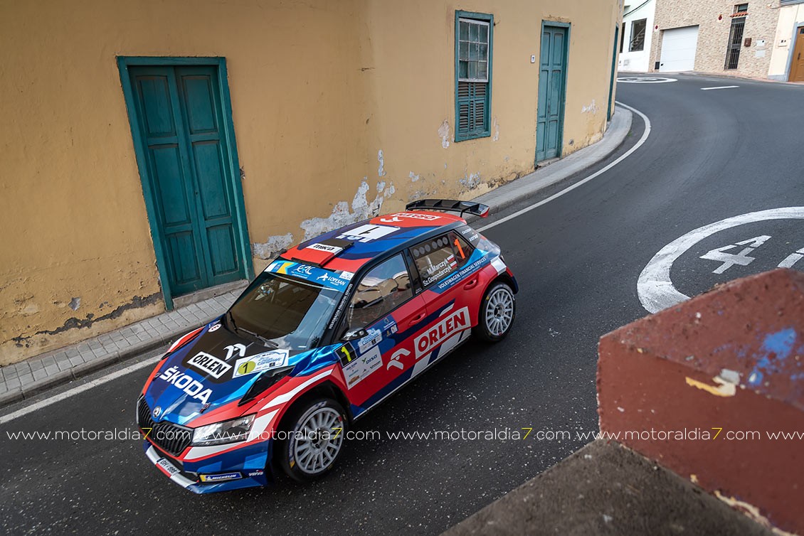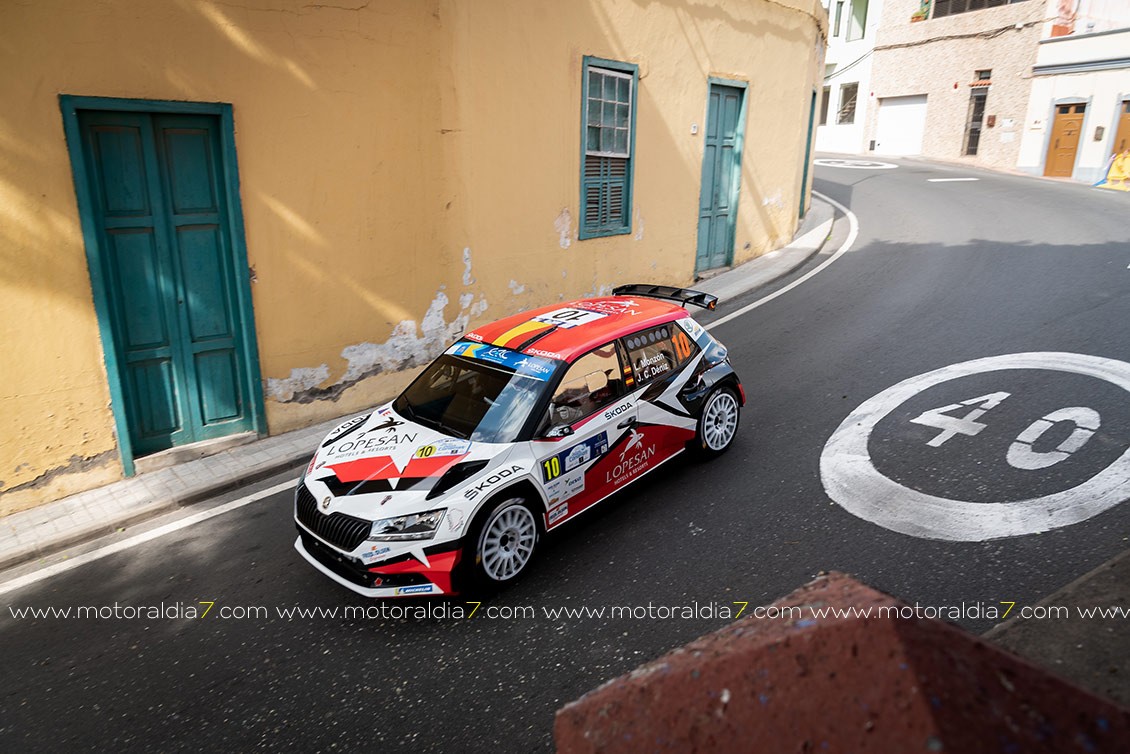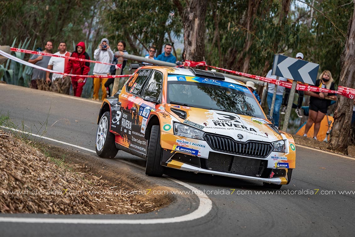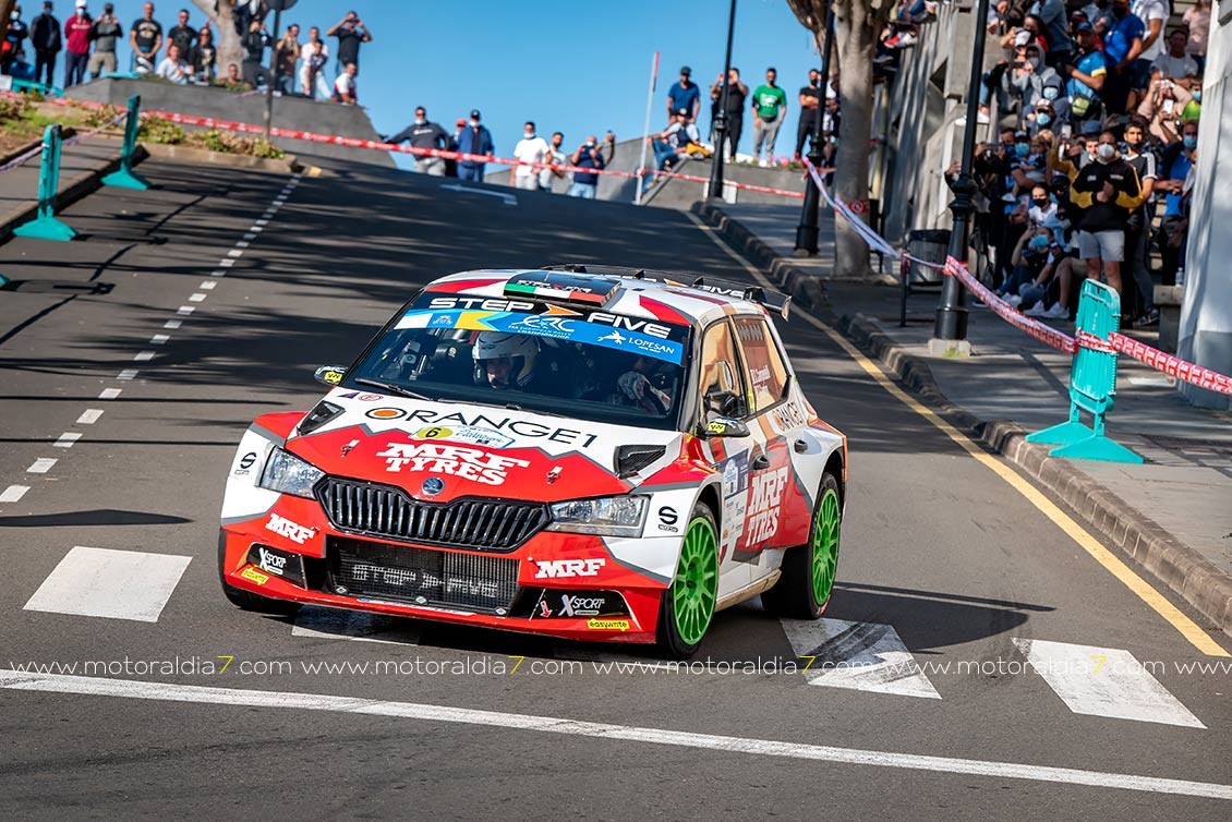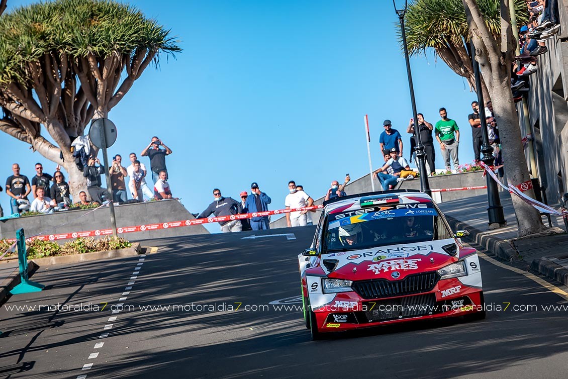Homenajeando a su isla de La Palma, Miguel Suarez con Dani Sosa a la derecha fue el cuarto equipo canario clasificado desde la undécima plaza de la general con su Skoda Fabia Rally2.