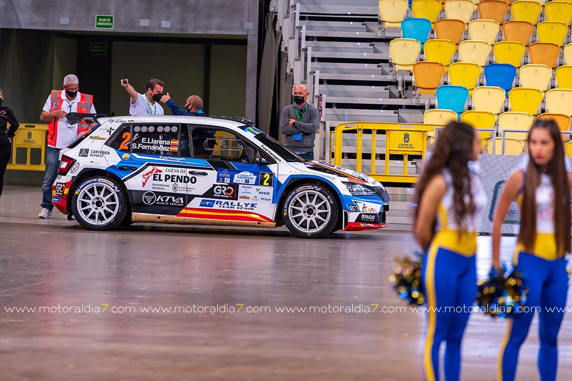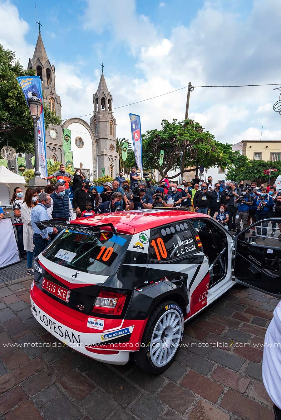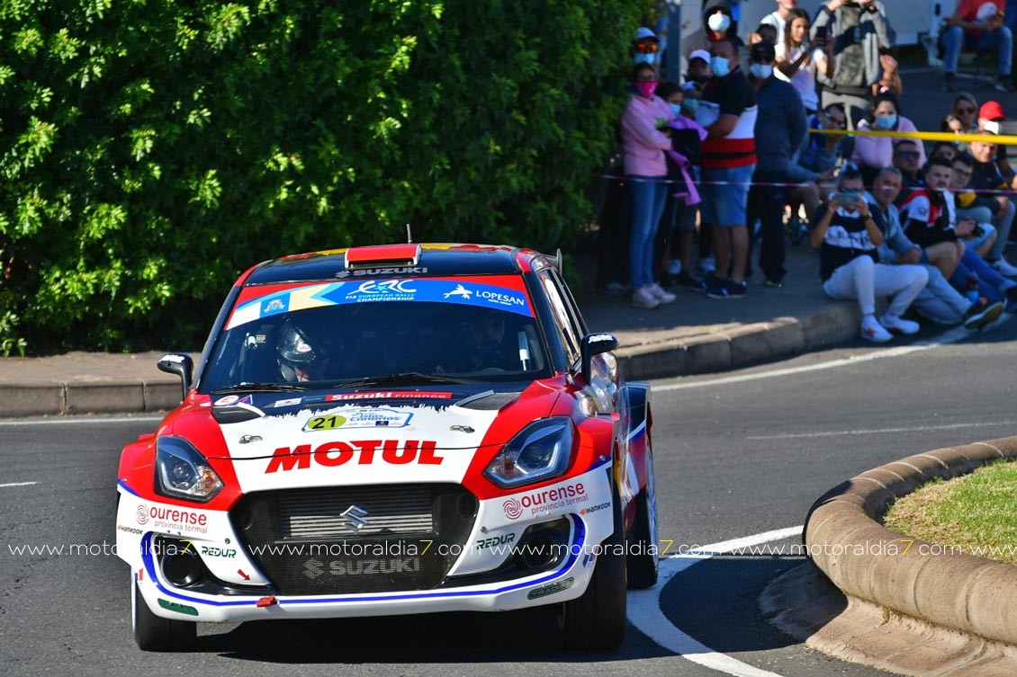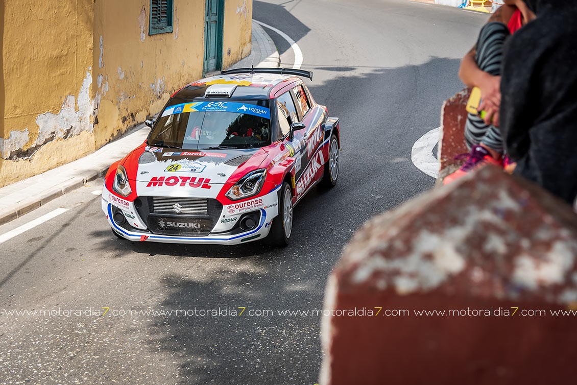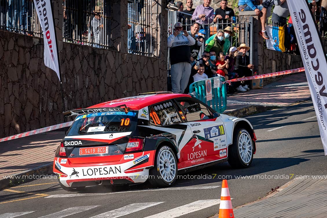 Homenajeando a su isla de La Palma, Miguel Suarez con Dani Sosa a la derecha fue el cuarto equipo canario clasificado desde la undécima plaza de la general con su Skoda Fabia Rally2.